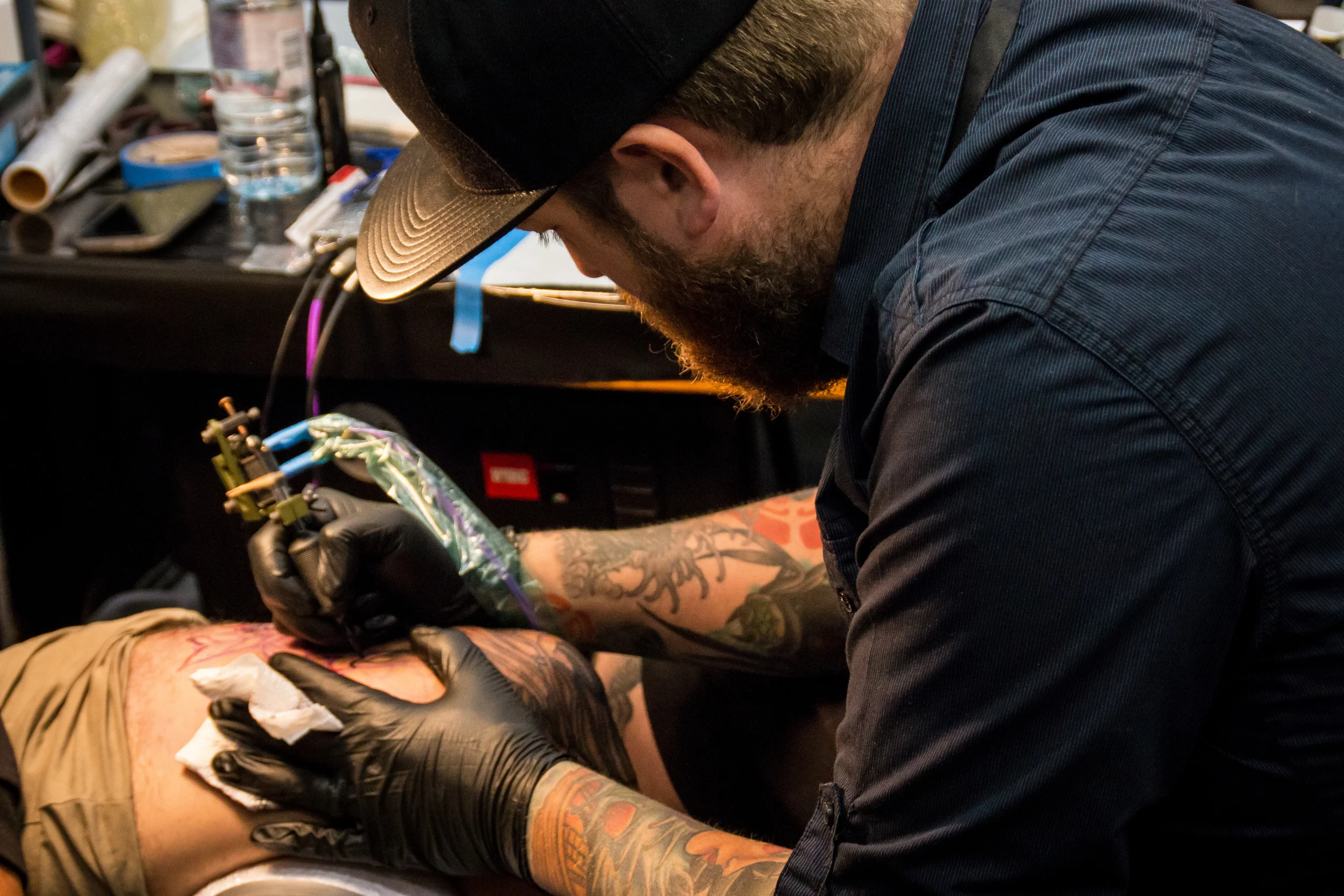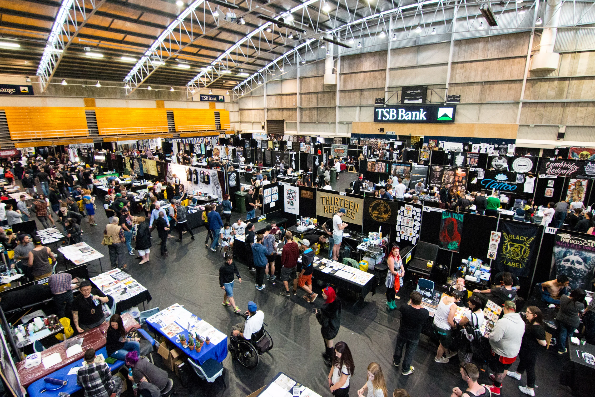 Tout est fin prêt pour que le festival ouvre ses portes le jour suivant. On dégaine nos laisser-passer de volontaires et on pénètre dans l'enceinte du stade, un véritable temple dédié à l'art du tatouage.