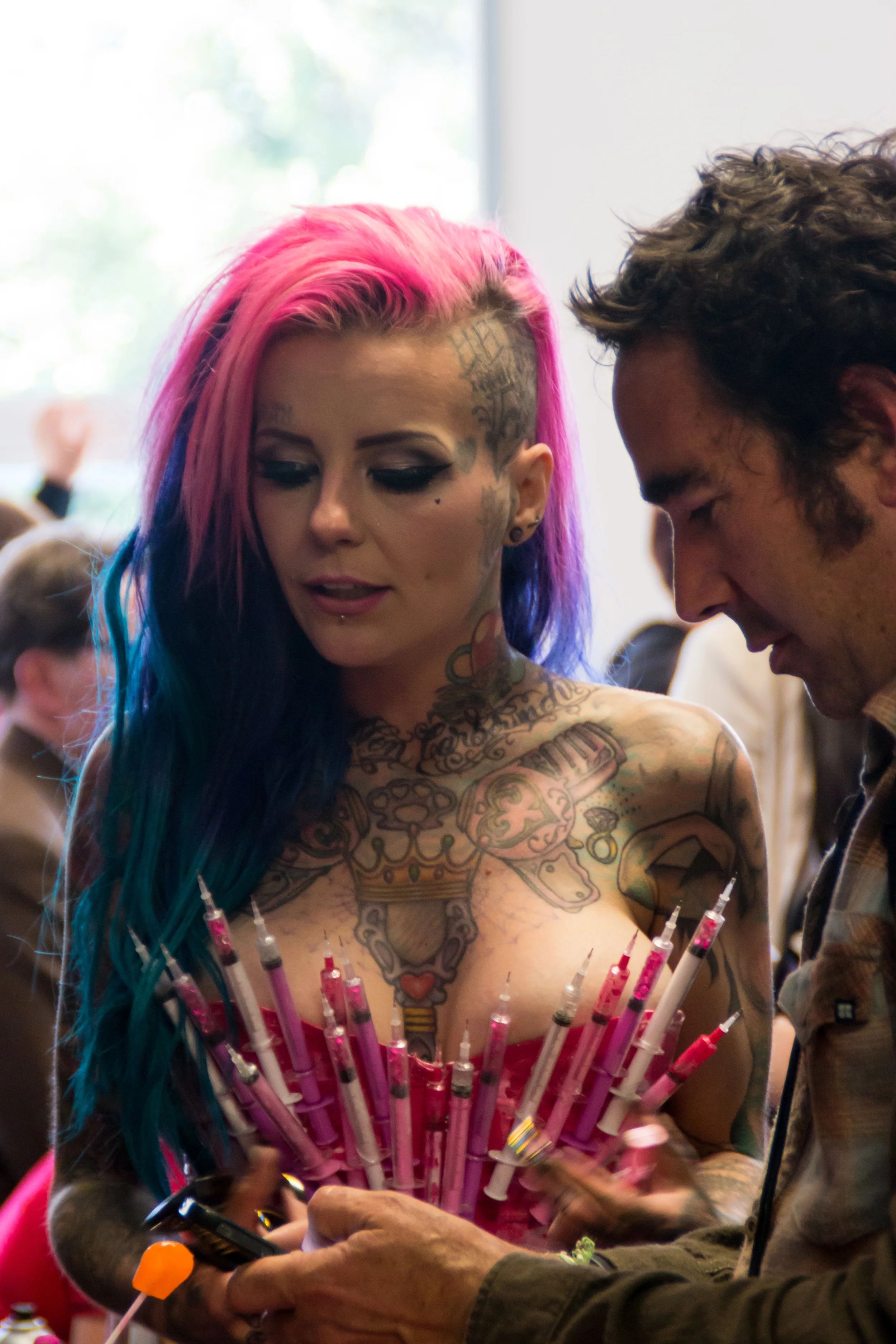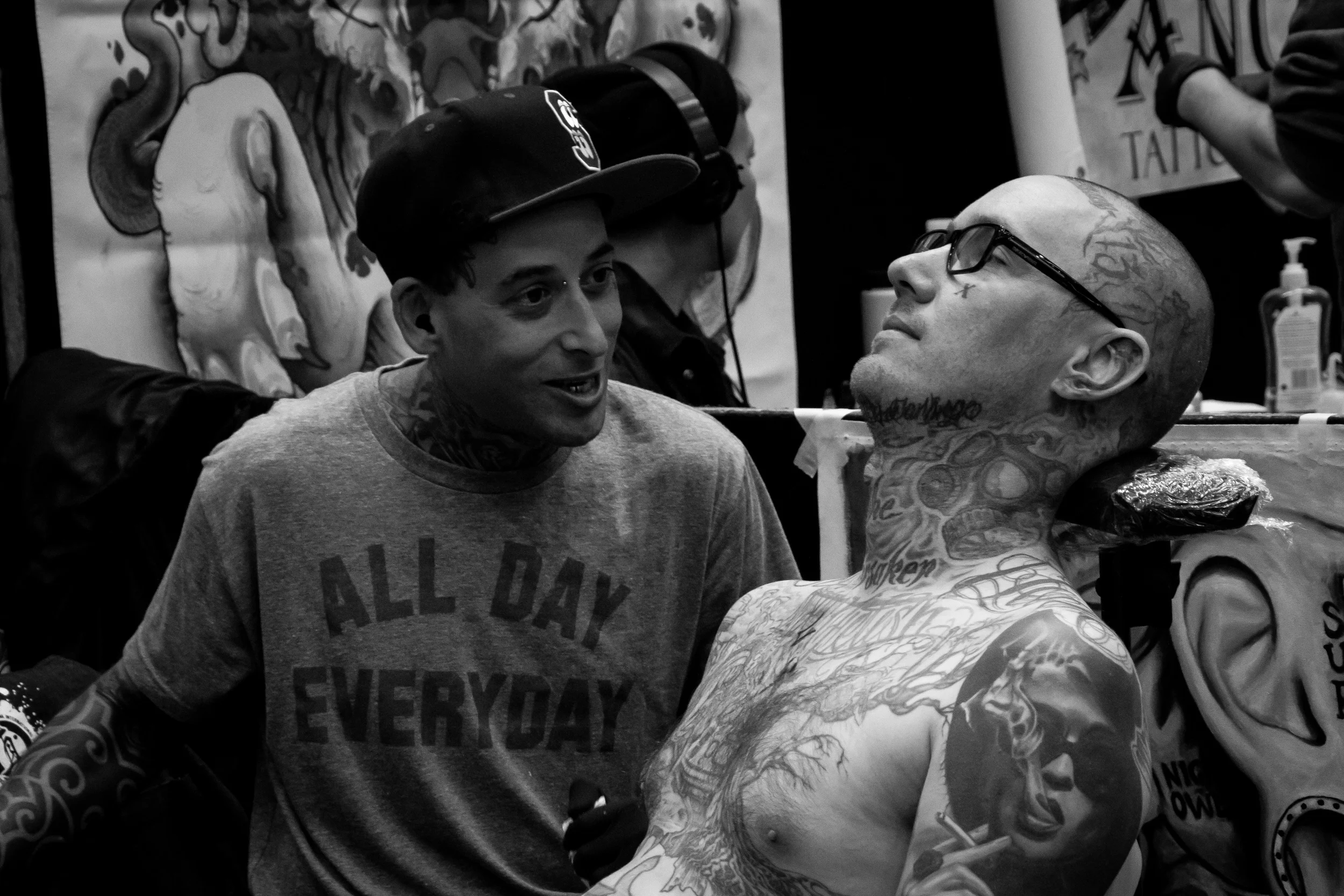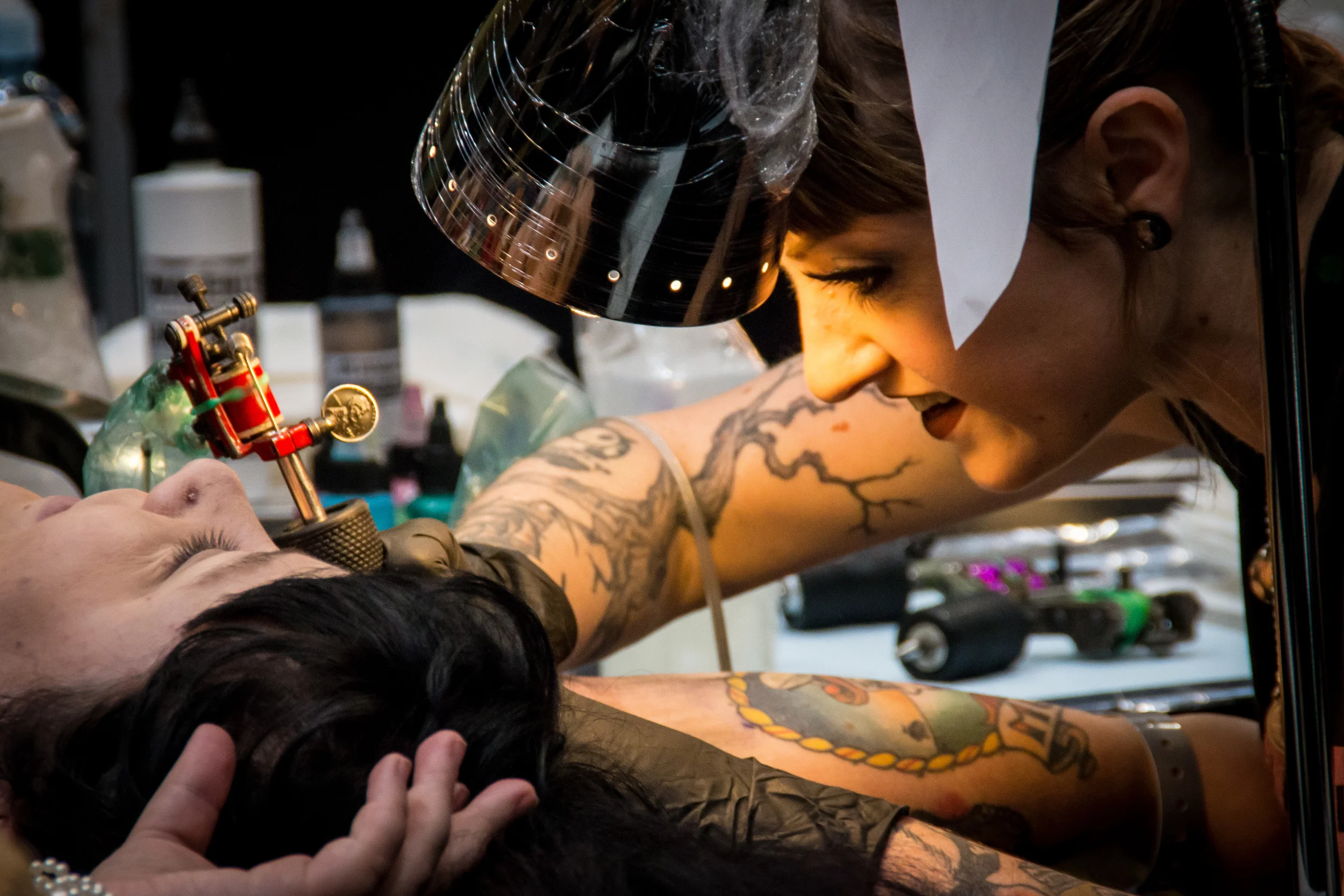 Il y en a vraiment pour tous les goûts; classique, coloré, gothique, traditionnel, discret, maori, exubérant, électrique, mystique,... La plupart des visiteurs ont fait le déplacement pour se faire tatouer sur place et on peut les voir passer sous l'aiguille de leur bourreau. Ça c'est à l'intérieur, à l'extérieur il y d'autres show; du contest de skate à l'envol de motocross en passant par les représentations burlesques.