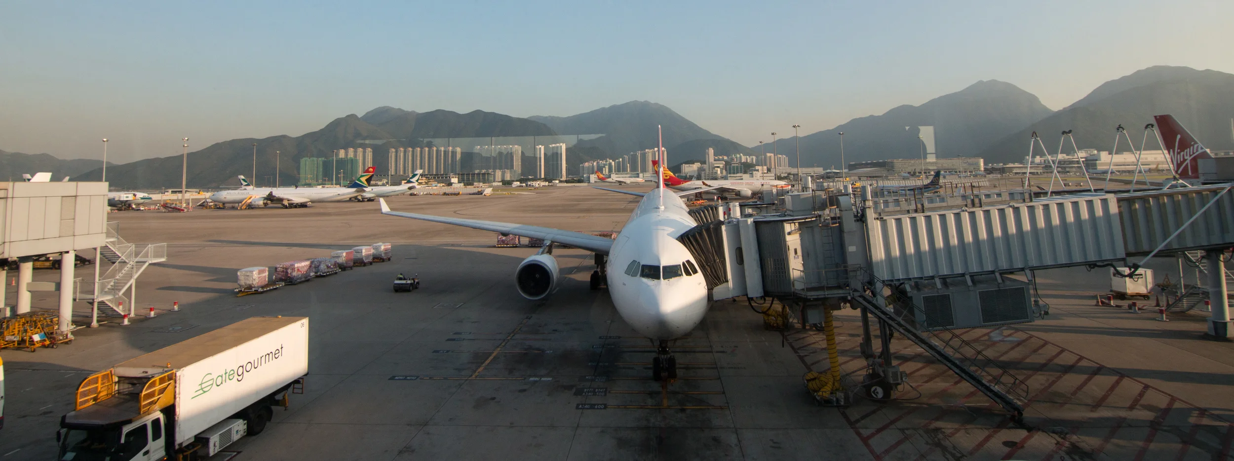 Bref, j'arrive à l'aéroport 2h30 en avance sur l'heure de départ de mon avion. L'enregistrement et l'embarquement pour Hong-Kong se font sans encombre et me voilà rapidement coincé entre une chinoise et un français dans un A340 bien rempli. 12 heures de route pour 6900 km ça parait long mais en fait c'est plutôt rapide quand on "dort" 7 heures.
