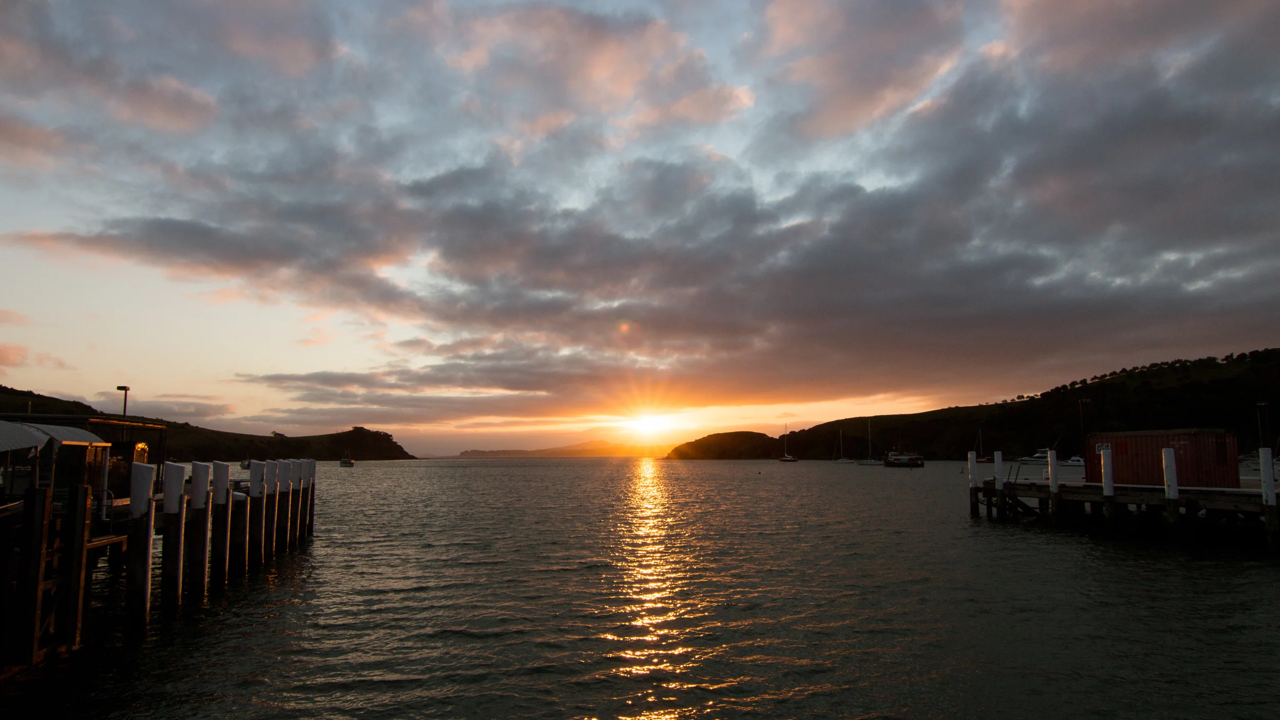 Coucher de soleil sur Waiheke, il est temps de reprendre le ferry