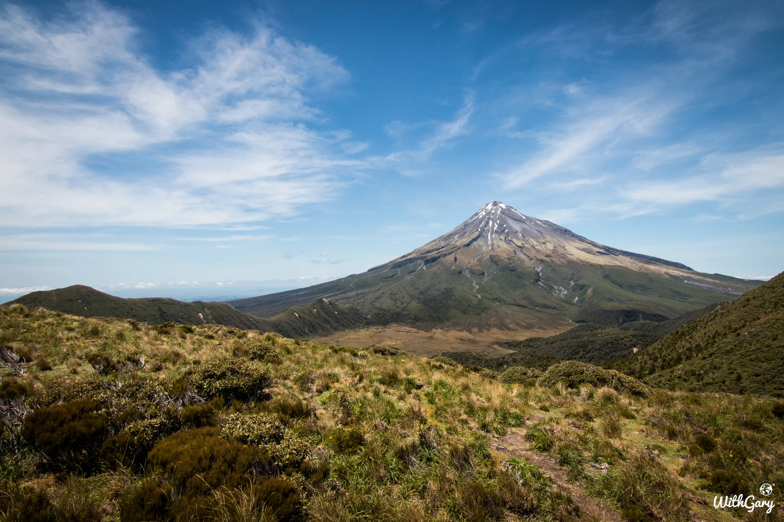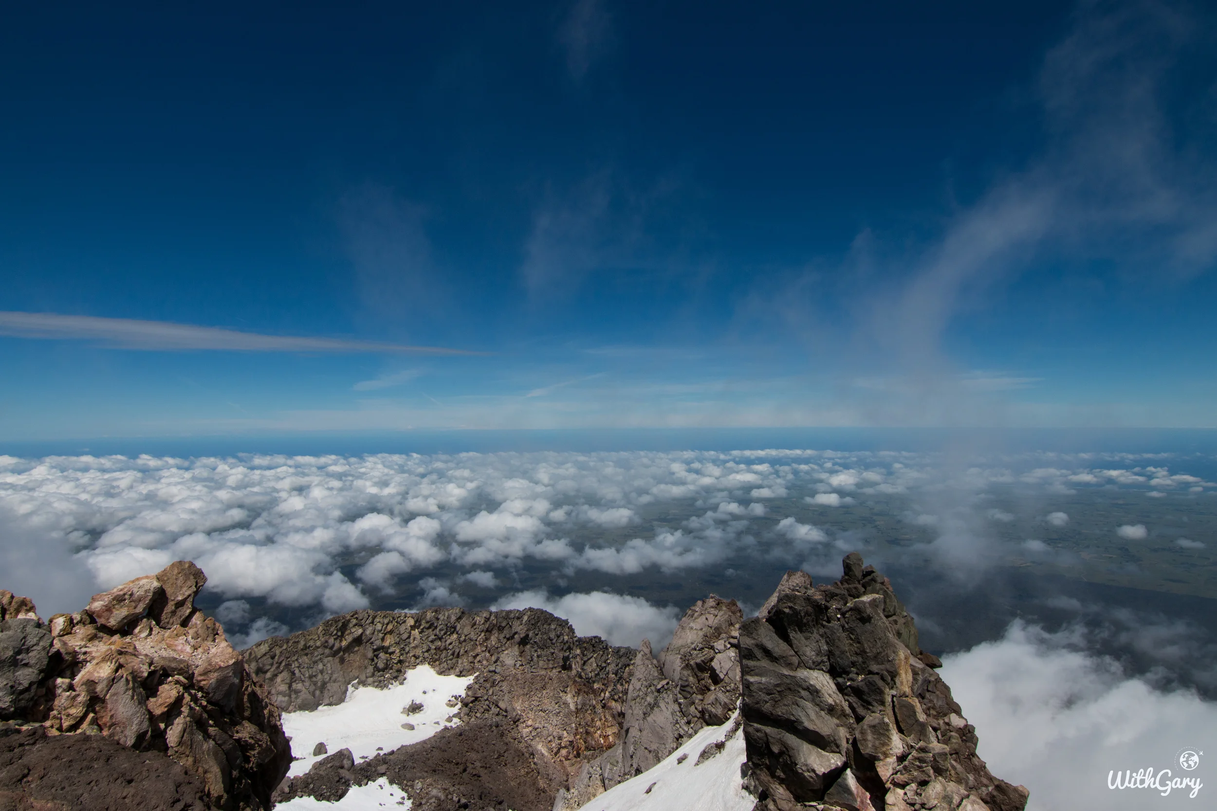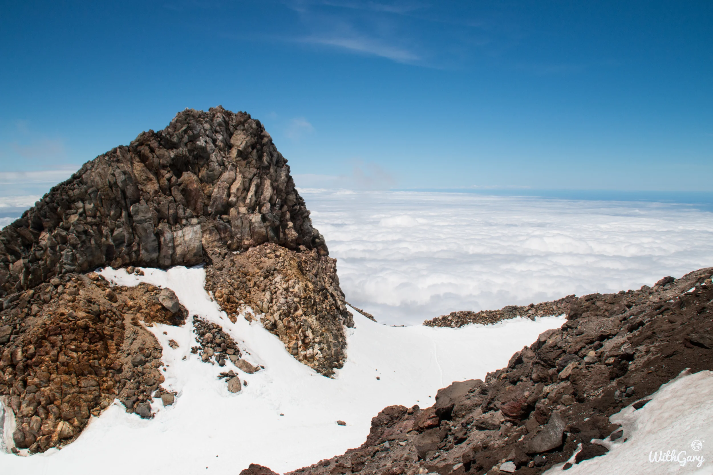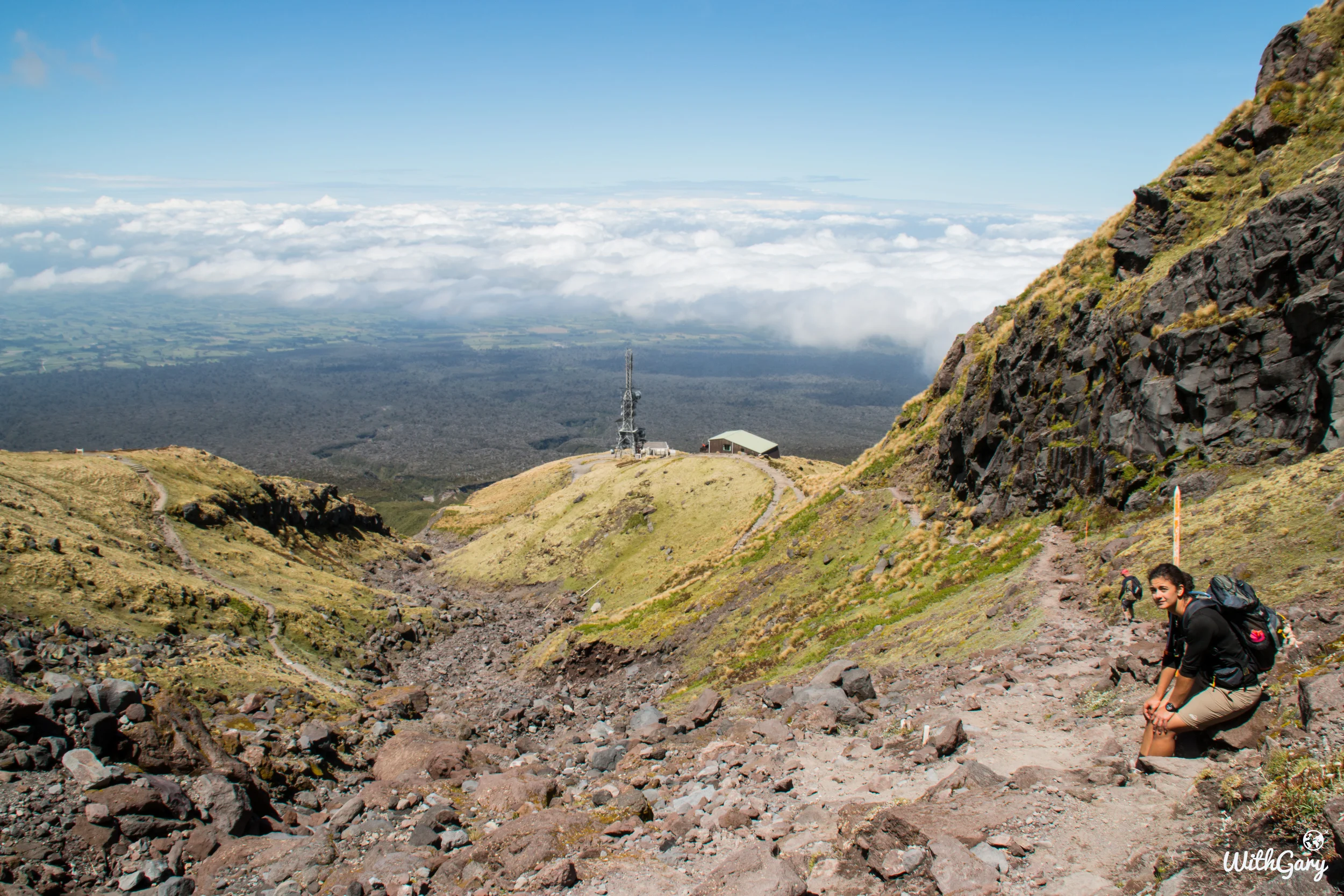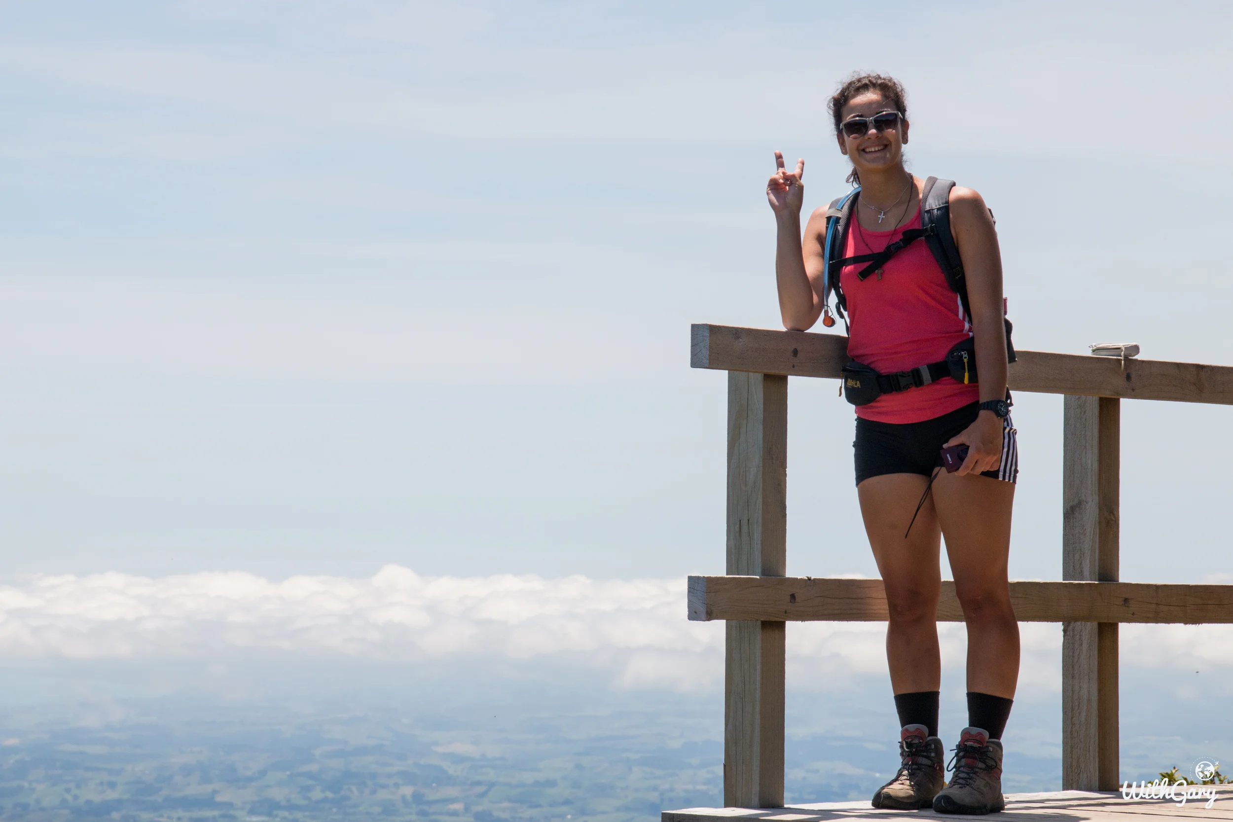 Tout comme pour le Tongariro, le début est plutôt facile mais au bout de deux heures les premières difficultés se font ressentir. Encore une fois, la pente est raide et le terrain glissant mais nettement plus abordable. On galère quand même 2 heures encore pour enfin apercevoir la neige qui recouvre le cratère. La vue se dégage et il ne nous reste plus que quelques mètres à escalader avant de prendre de pleine face la vue plongeante sur la région et la mer.