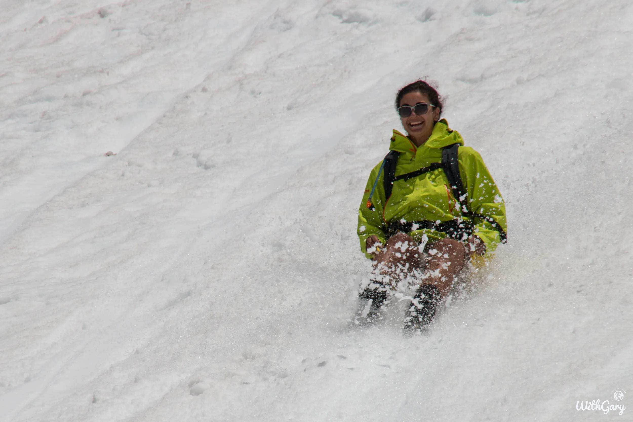 Quelques jours plus tard, débarrassés du kway rose et de son contenu (**joke**) je retourne avec Valentina au pied du volcan pour cette fois en toucher le sommet. On part bien plus tôt que notre précédente expédition pour éviter le vent qui se lève durant l'après-midi. Après une nuit dans le van juste en bas de la montagne, ma coéquipière d'ascension et moi partons pour 6-8 heures de marche en direction de la neige toujours présente.