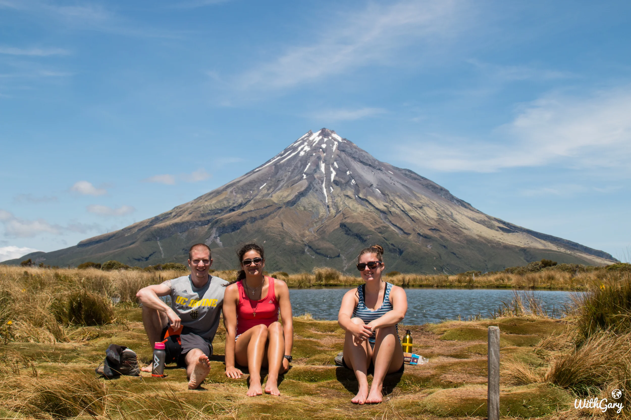 Le lendemain une amie allemande de Valentina nous rejoint en ville pour 3 jours de canoë-kayak sur la rivière Wanganui. Mais avant, elle a elle aussi envie d'arpenter cette mystérieuse montagne. On trouve un itinéraire sympa sans avoir à payer une navette onéreuse. Résultat quatre heures de marche autour du cône avec des lacs très photogéniques.