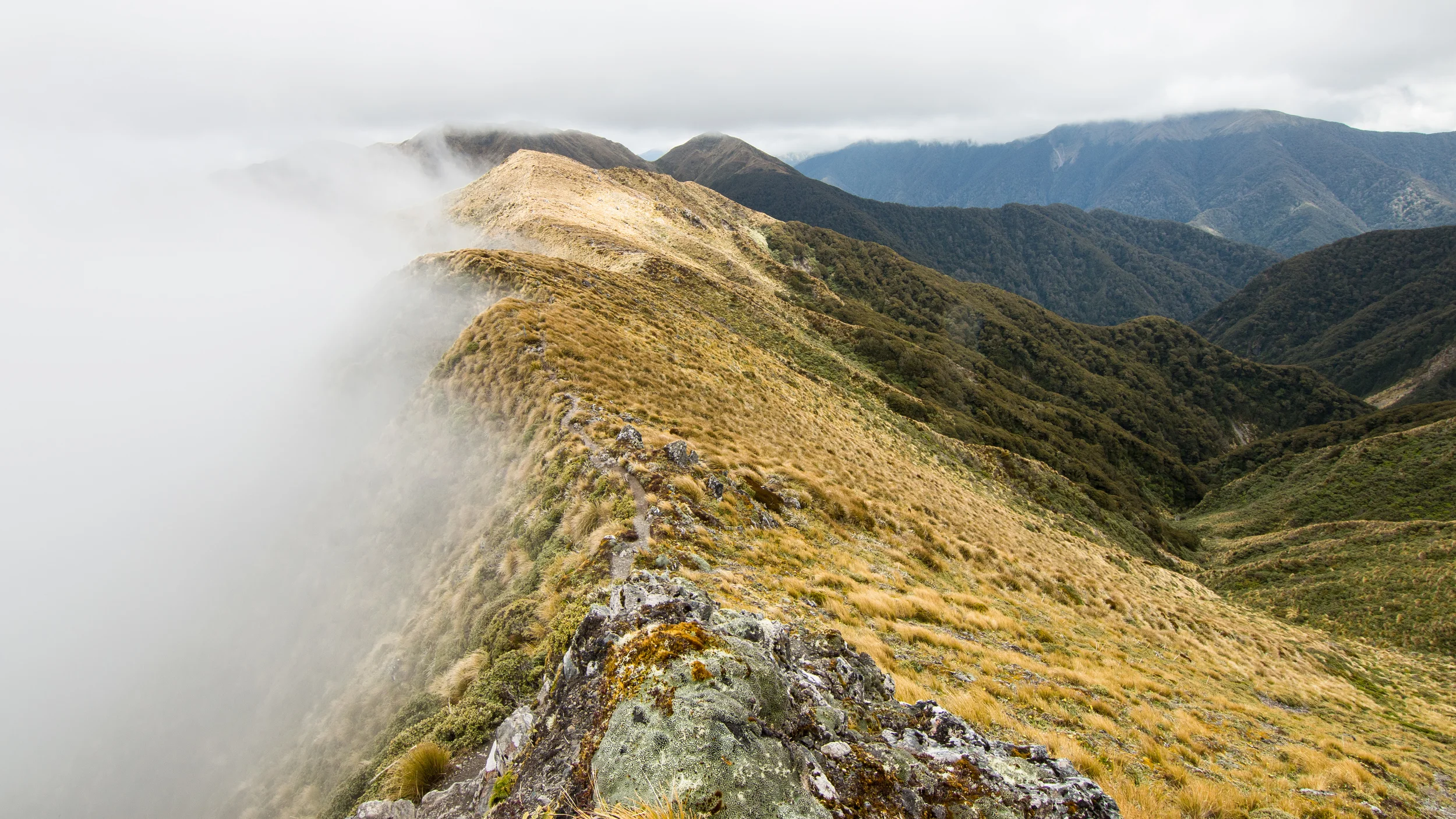 Lors de mon premier passage dans cette partie du pays, je pars avec mon sac à dos à l’assaut du Mont Holdsworth (prononcé "old-z-worf"). La montée est plutôt raide et surtout pleine de nuages pour ma part. Au bout de quelques heues elle laisse place à une marche sur les crêtes des sommets avoisinants. Les nuages collés à certains flancs de montagne offrent un spectacle merveilleux et unique en son genre. Finalement, même nuageux c'est aussi grandiose. Je croise peu de gens sur cette randonnée bien moins fréquentée que les Great Walk. Avant mon arrivée au refuge pour la nuit, je rencontre le gardien des lieux, le ranger quoi. On se retrouvera par la suite au sein de la hutte. En fin de soirée, les nuages se dissipent et je peux apprécier les montagnes et vallées sous une lumière couchante, c'est carrément pas mal aussi ! Le soir je me retrouve seul randonneur à passer la nuit dans le refuge, heureusement le ranger est là pour discuter et échanger un peu. Il est en fait étudiant en environnement et histoire maorie dans le sud de l’île du sud. Il m'en apprend donc pas mal sur les croyances et les dieux de ce peuple arrivé en premier sur ces terres. Le lendemain matin je prends mon temps pour quitter les lieux gorgées de soleil. La descente de quatre heures est plus rapide et me réserve un déjeuner sur une branche au dessus de la rivière, au poil !
