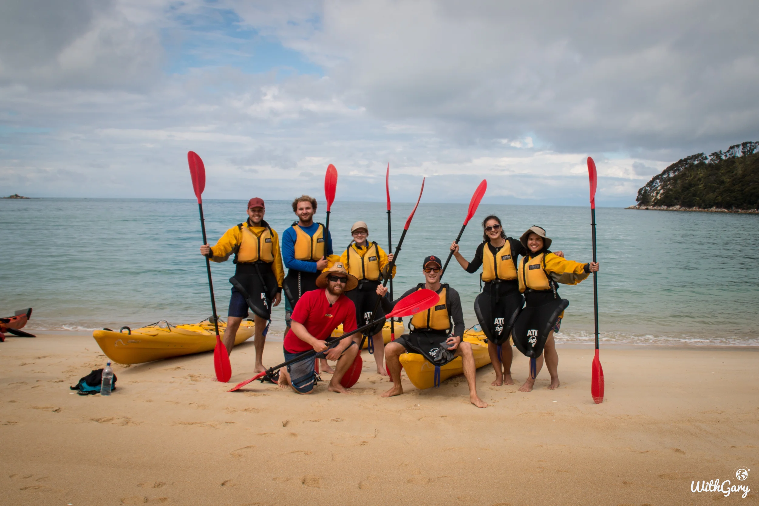 Fin Février donc, on se rejoint à Nelson pour peaufiner les derniers détails de la rando sur six jours dont un orienté kayak. La marche étant "one way" il nous faut réserver les navettes de départ et d'arrivée ainsi que les kayaks. Les deux premiers points rapidement faits, la réservation des embarcations navales s'avère plus compliquée car notre journée sur l'eau se situe au milieu de la randonnée et aucune compagnie n'autorise d'excursion sans guide à cet endroit. C'est donc plus cher, mais surtout encore mieux puisque ce sera au milieu d'une réserve marine protégée. Vendu ! Tout est fin prêt, les noodles dans le sac, le maillot de bain enfilé c'est parti pour six jours d'escapade à travers ce parc.