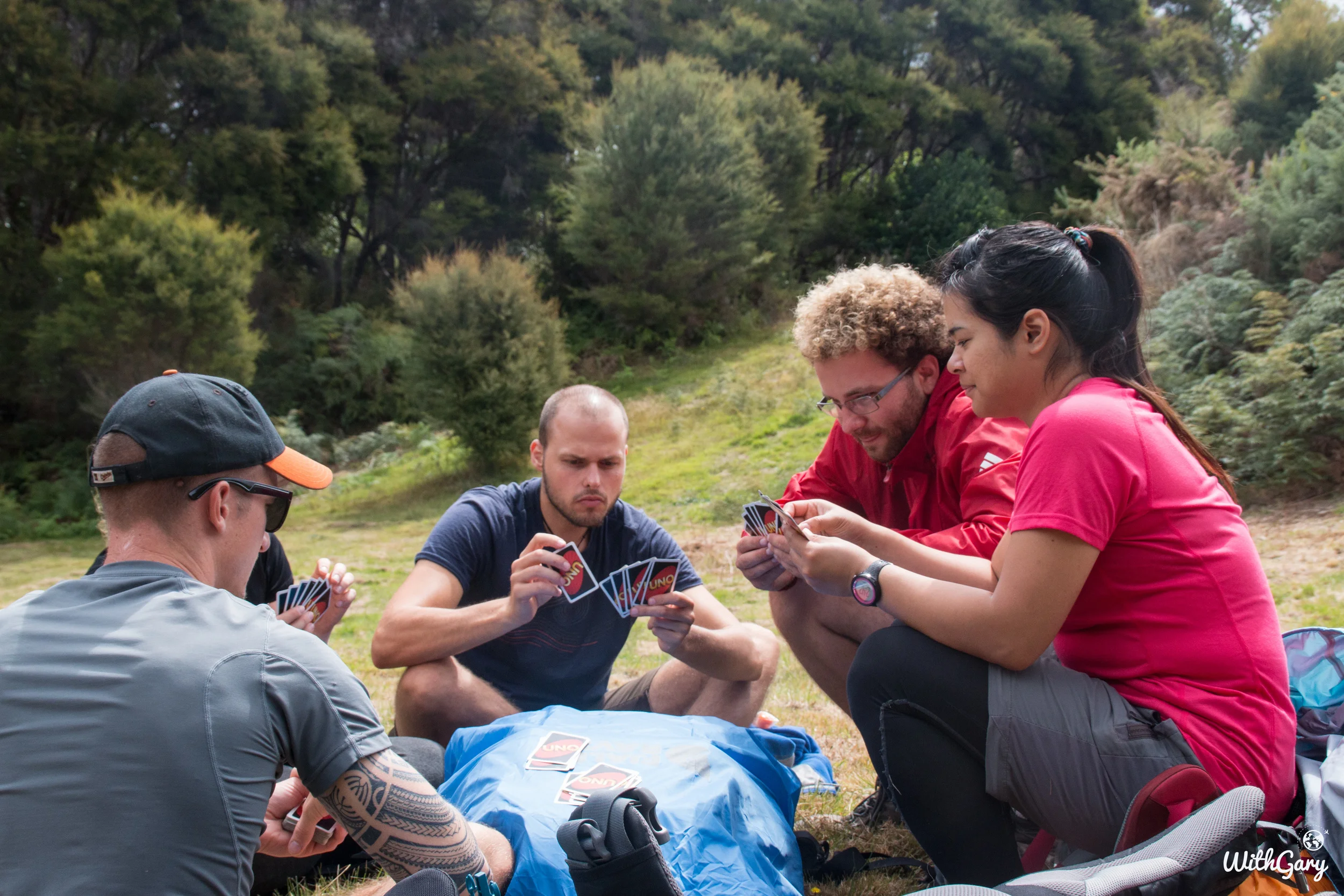 Le ciel bleu nous accompagne pour ce premier jour qui offre déjà de belles vues sur la mer turquoise et les plages de sable fin du parc. Après quelques heures de marche nous arrivons au campement qui nous accueillera pour la nuit qui arrive. Comme on arrive assez tôt on peuut profiter de la plage à 5 minutes et du refuge pour une partie de UNO. Ce terrible jeu addictif nous accompagnera pendant toute la durée de la rando. Simple, international, fun les parties s'enchainent avec la plage et le soleil couchant en toile de fond.