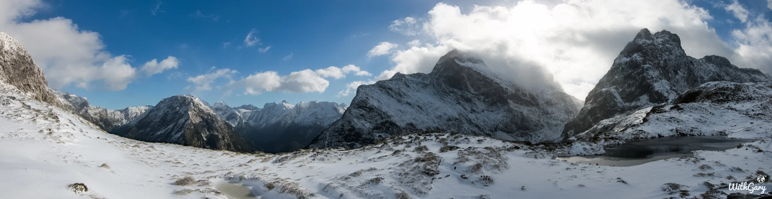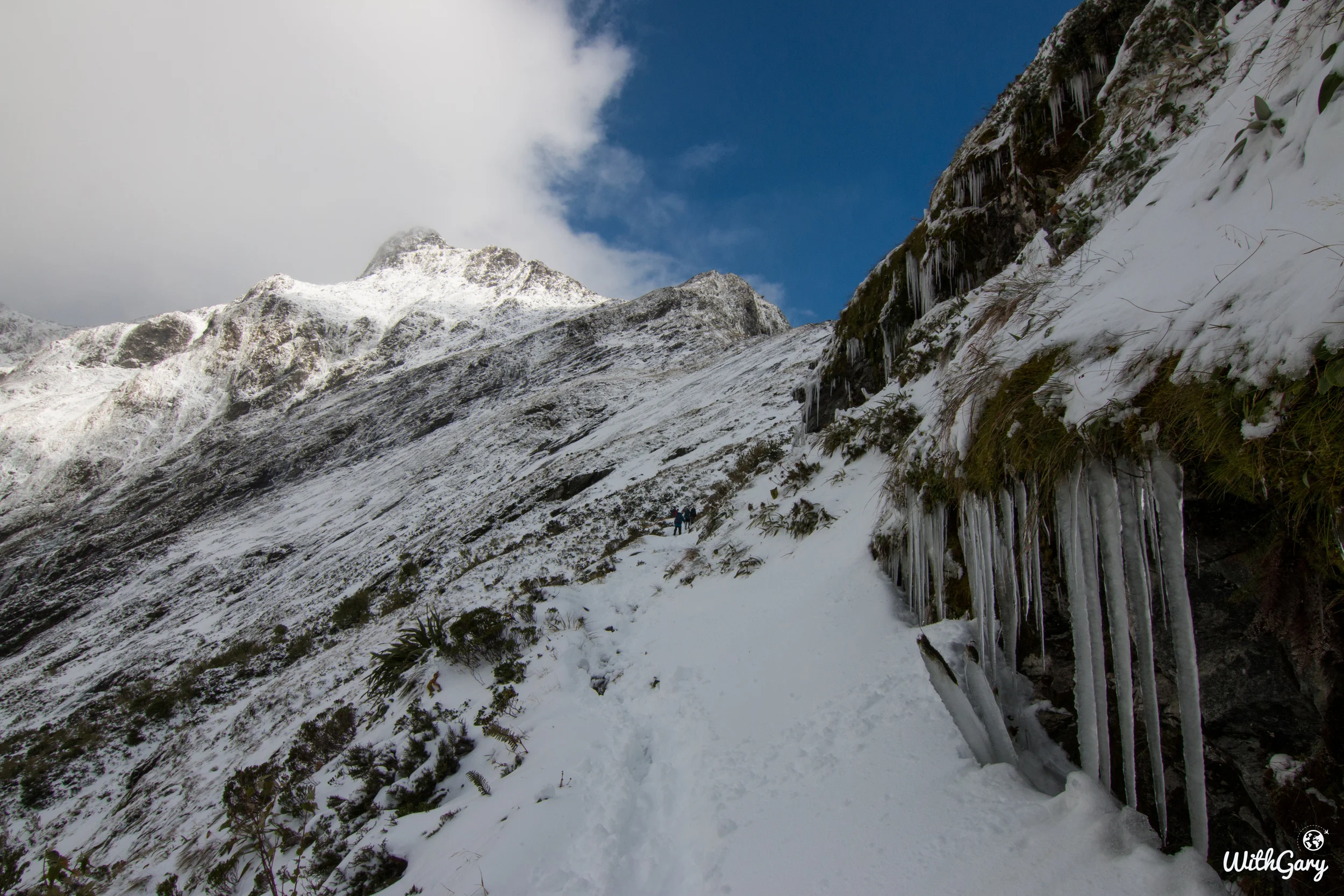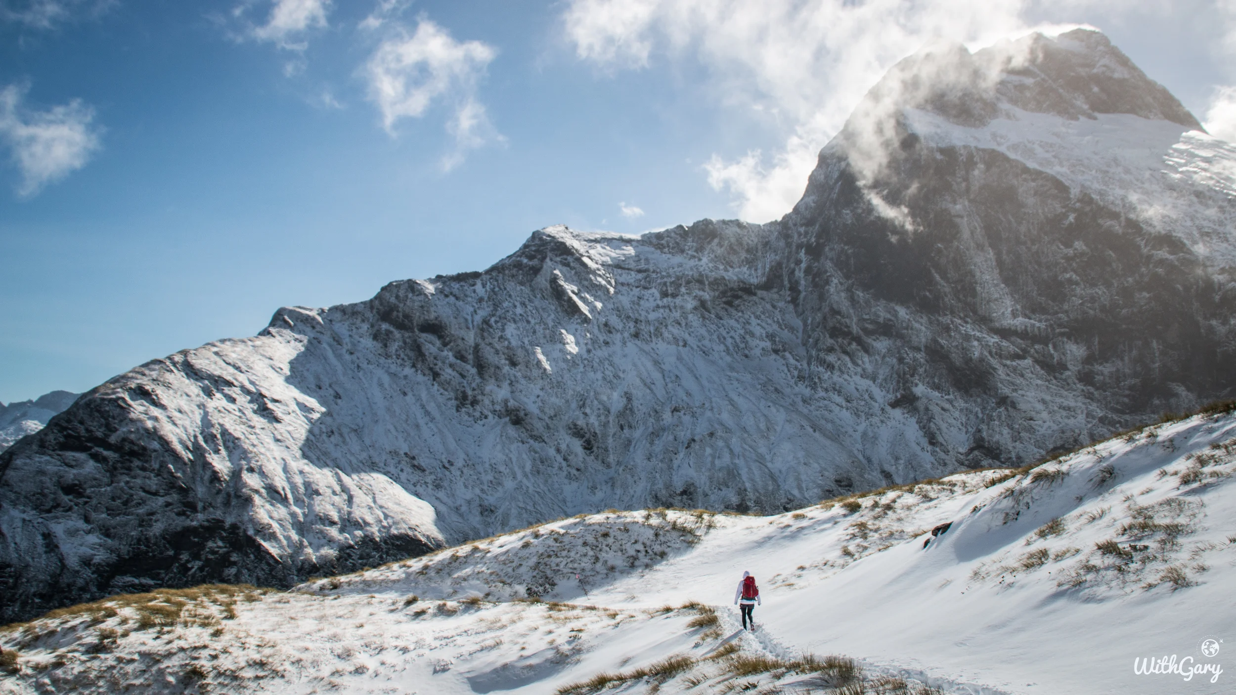On arrive au refuge après une journée fantastique et mille merveilles encore fraîches dans nos yeux. On se rend tous compte de la chance qu'on a eu de voir ces sommets sous la neige avec un ciel dégagé. Le lendemain on attaque notre dernière journée de marche avant d'embarquer dans le bateau qui nous ramènera à un semblant de civilisation. Alors on profite un maximum de ces derniers moments avec encore un ciel bleu vierge de nuages et une lumière venant des cieux les plus divins.