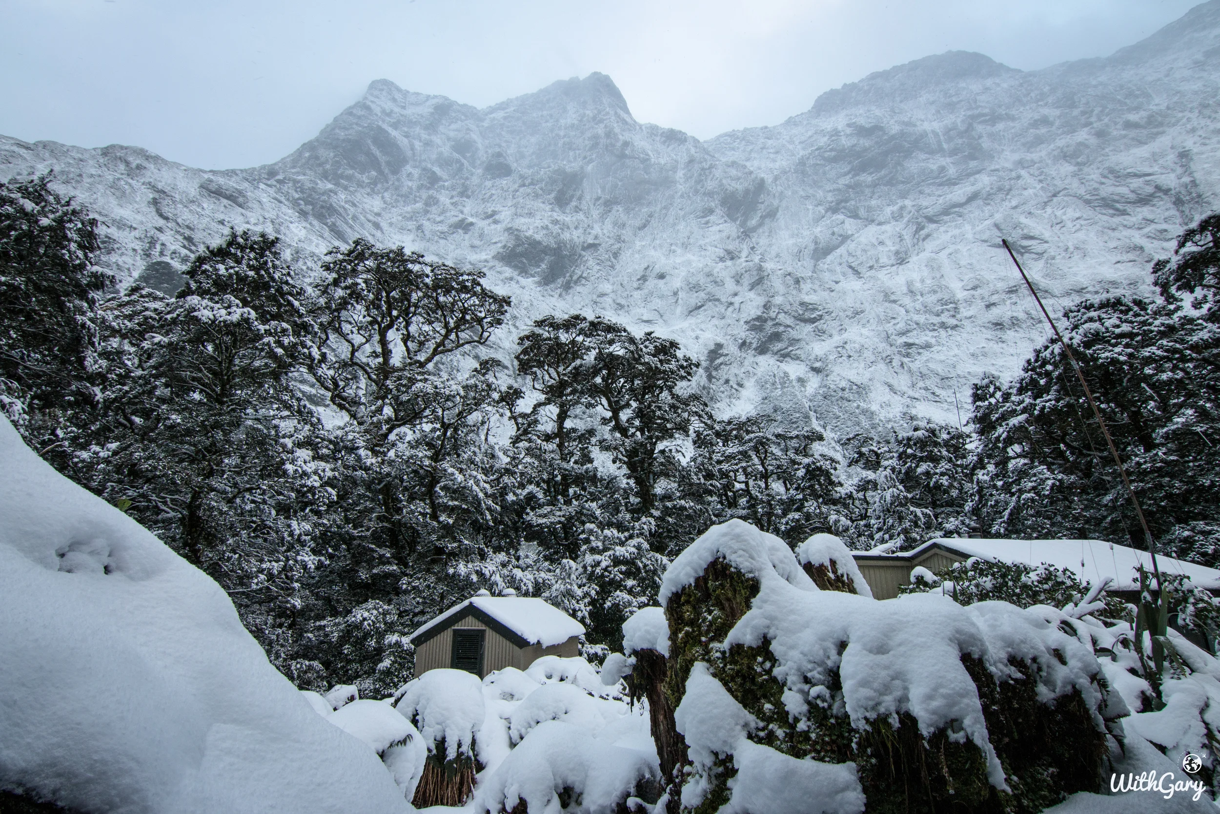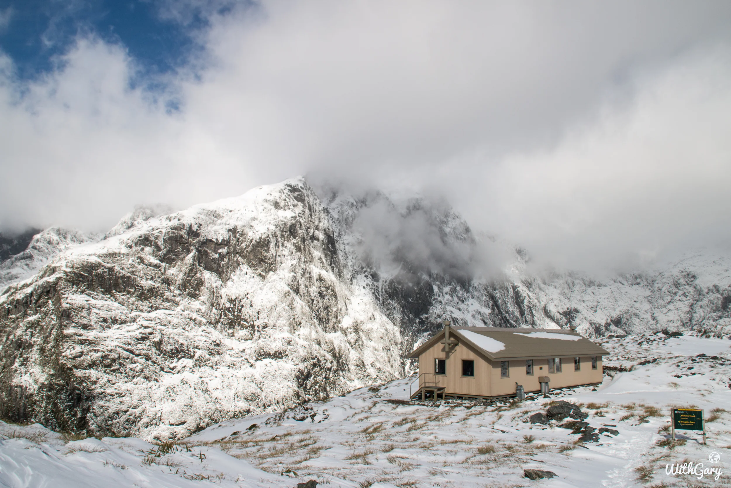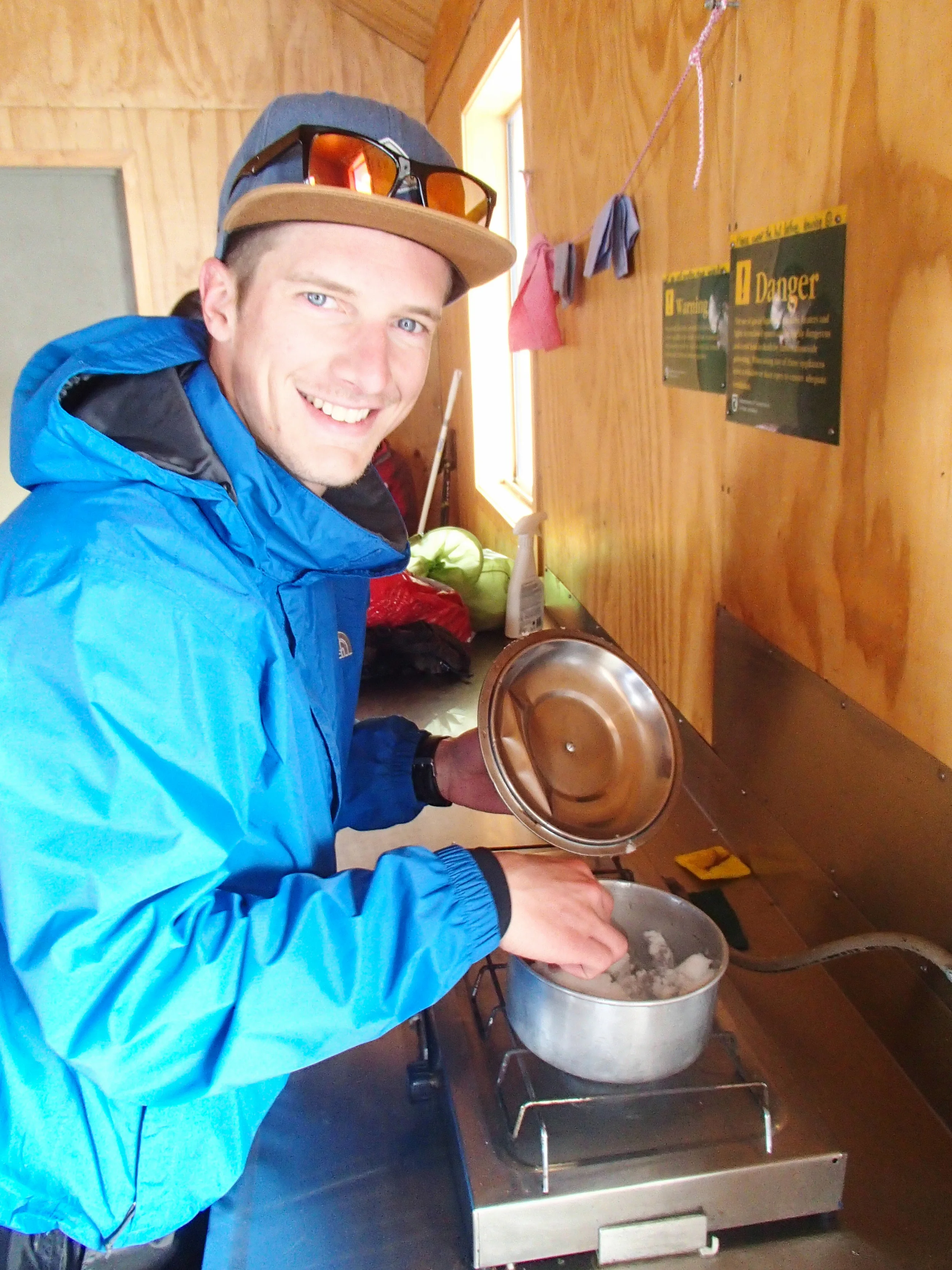 Le lendemain matin, Tom, le jeune ranger du refuge, nous informe que le DOC (Department Of Conservation) nous interdit à reprendre la route car il a trop neigé ces dernières heures et le col que nous nous apprêtons à franchir est inaccessible. En effet 1m50 de neige bloque le passage... Nous n'avions pas prévu de victuailles pour une journée supplémentaire, heureusement le refuge contient des vivres qui nous permettront de pallier ce manque.