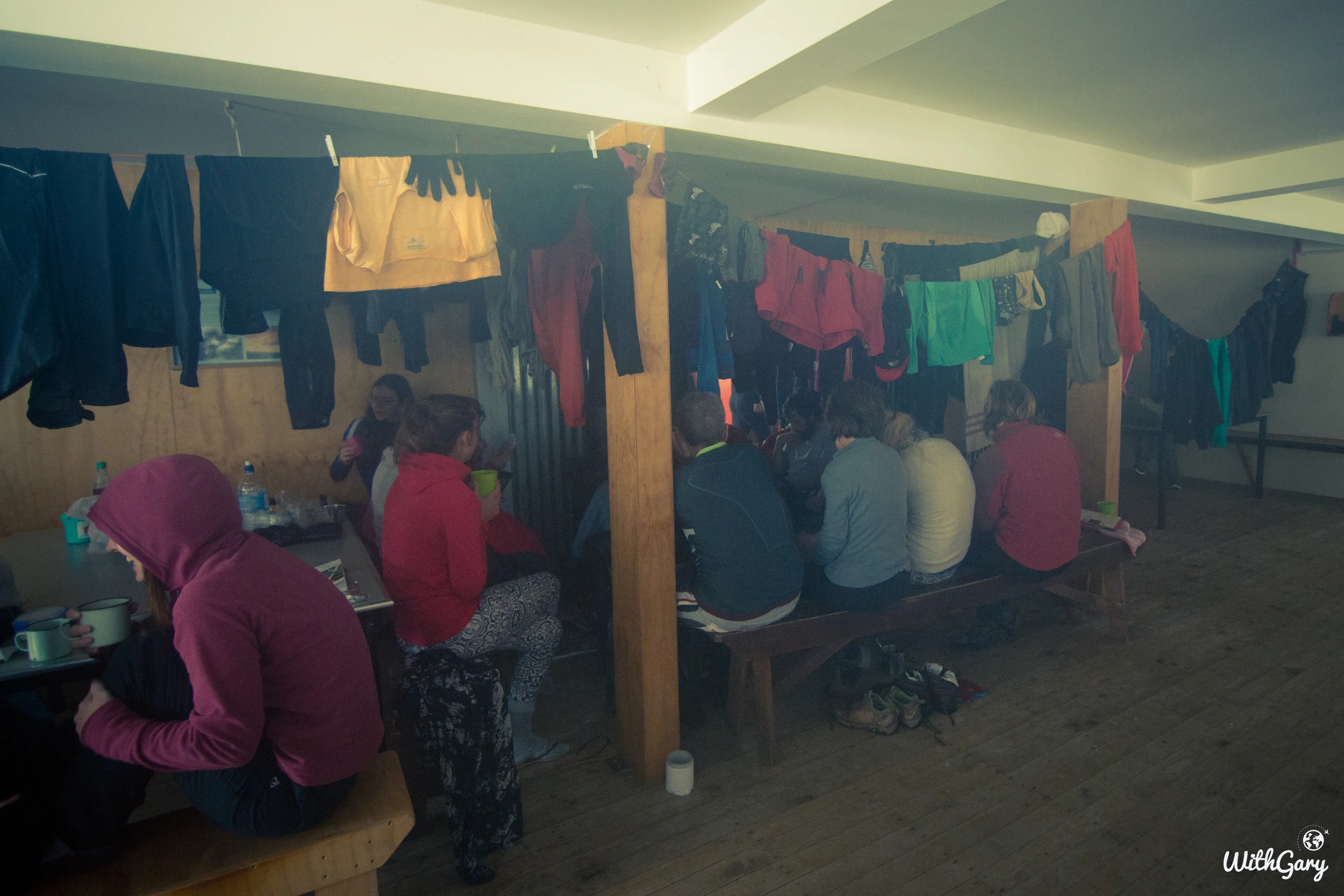 Notre groupe, essentiellement composé de kiwi (habitants de Nouvelle-Zélande) est uni dans cet effort commun et comme on se suit chaque jour et chaque nuit, on apprend à se connaitre. Le soir est l'occasion de parler à chacun, tous d'horizons différents, d'échanger et d'apprécier ces moments bien réels. Du père de famille venu seul avec ses deux jeunes enfants, en passant par la famille de baroudeurs, sans oublier le couple de médecins et les amies quadragénaires venues repoussées leur limites, on échange avec ce bouillon de personnalités toutes aussi intéressantes les unes que les autres. Chacun fait preuve de bienveillance envers l'autre et on assiste à un vrai moment de communauté.