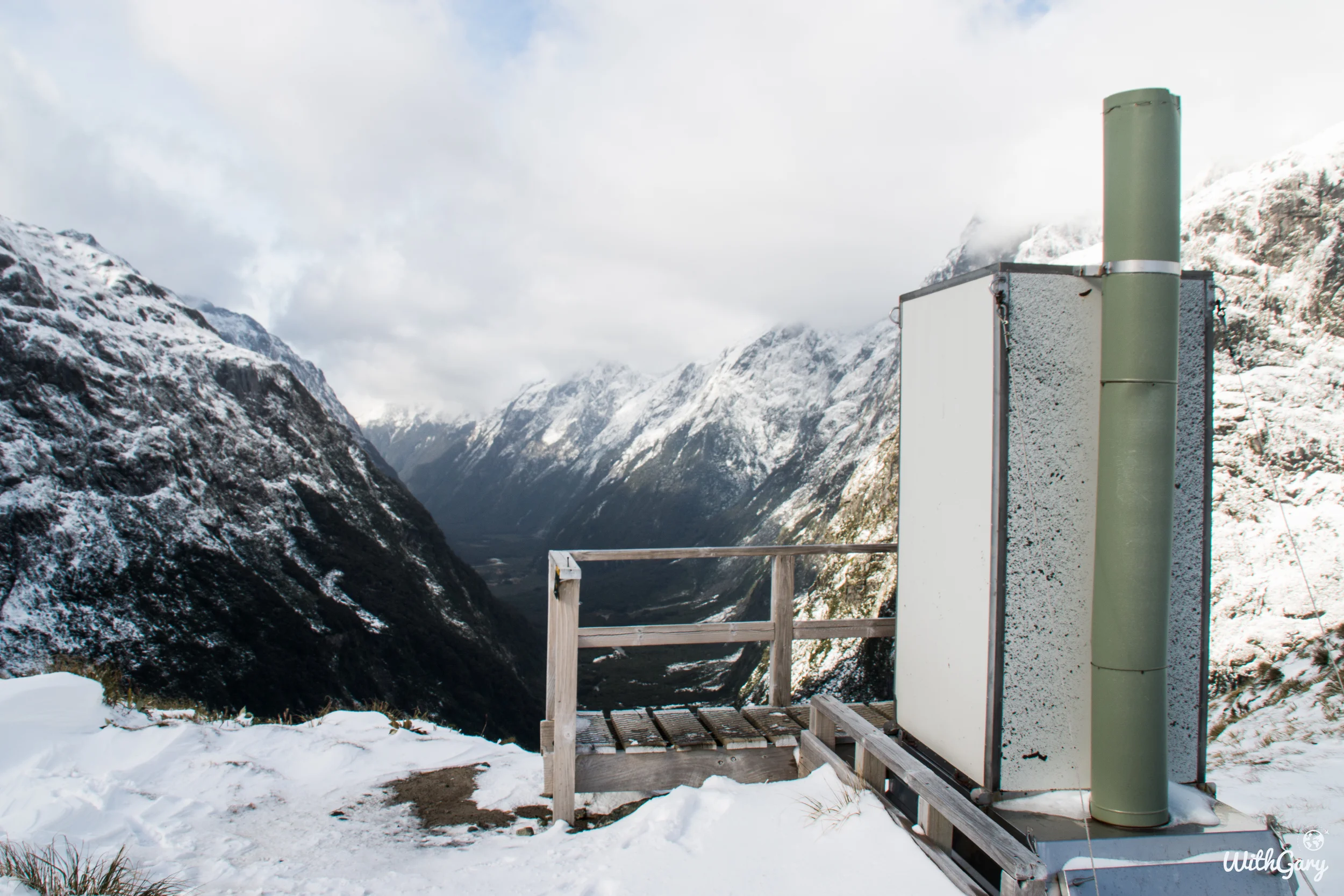 Il y a même un petit refuge en haut pour se réchauffer et se remettre de ses émotions. On fait fondre un peu de neige pour se préparer un thé bien mérité. Il y a même des toilettes avec une vue imprenable sur la vallée que nous venons de quitter.