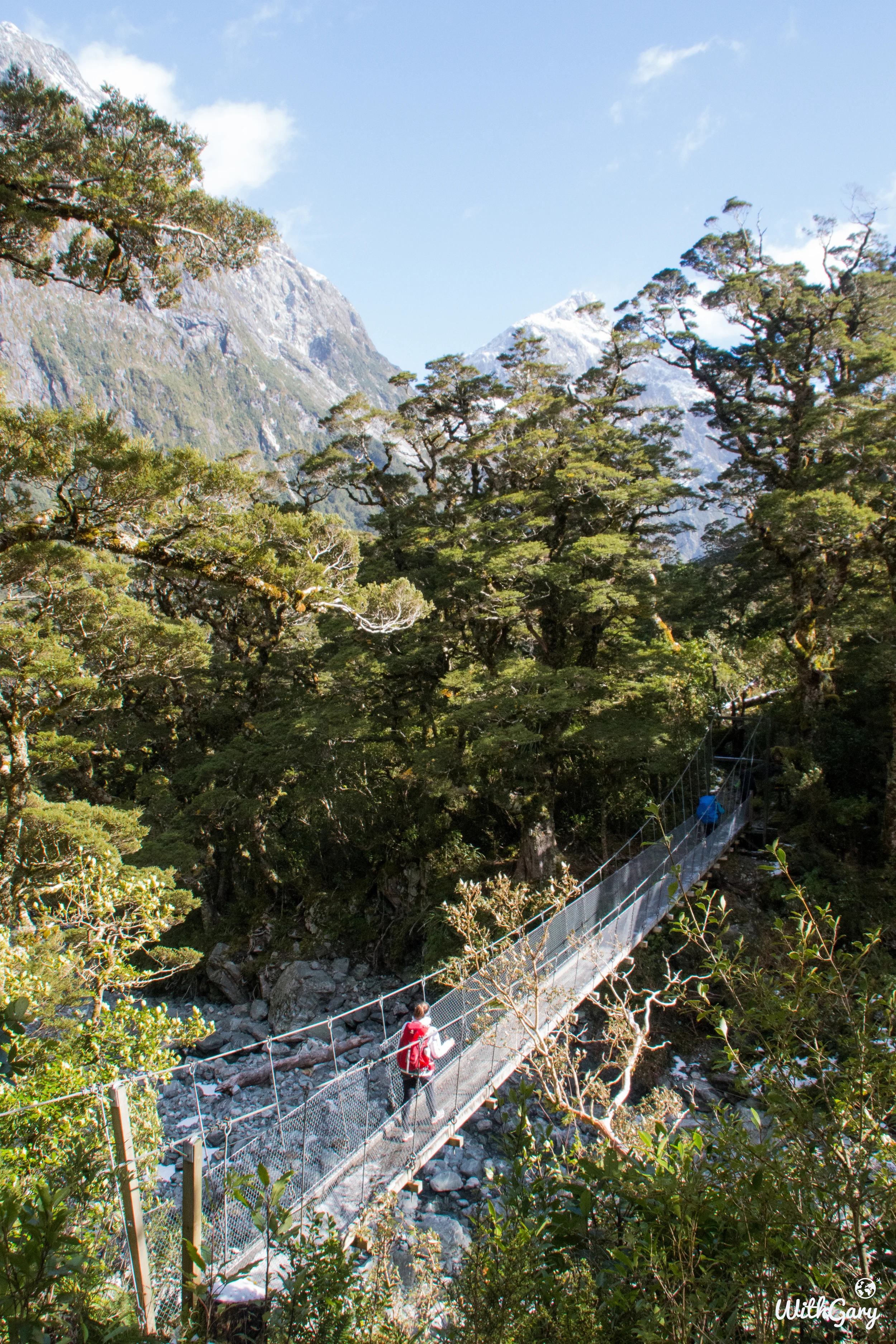 Après deux heures à voguer sur les flots des fjords, nous posons enfin le pied sur le mythique "Milford Track". Nous avons déjà dépassé la moitié de la journée alors seulement 5km de plat nous attendent pour rejoindre le premier refuge. Et déjà nous nous sentons privilégiés de ce lieu insolite et préservé. Tout ce qui nous entoure se meut d'une énergie singulière, la nature règne sans partage pour notre plus grand bonheur.
