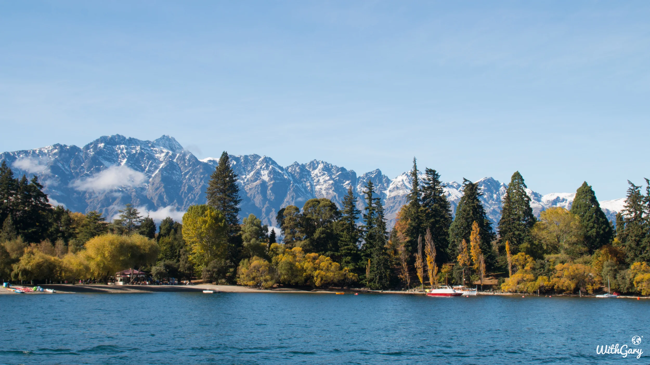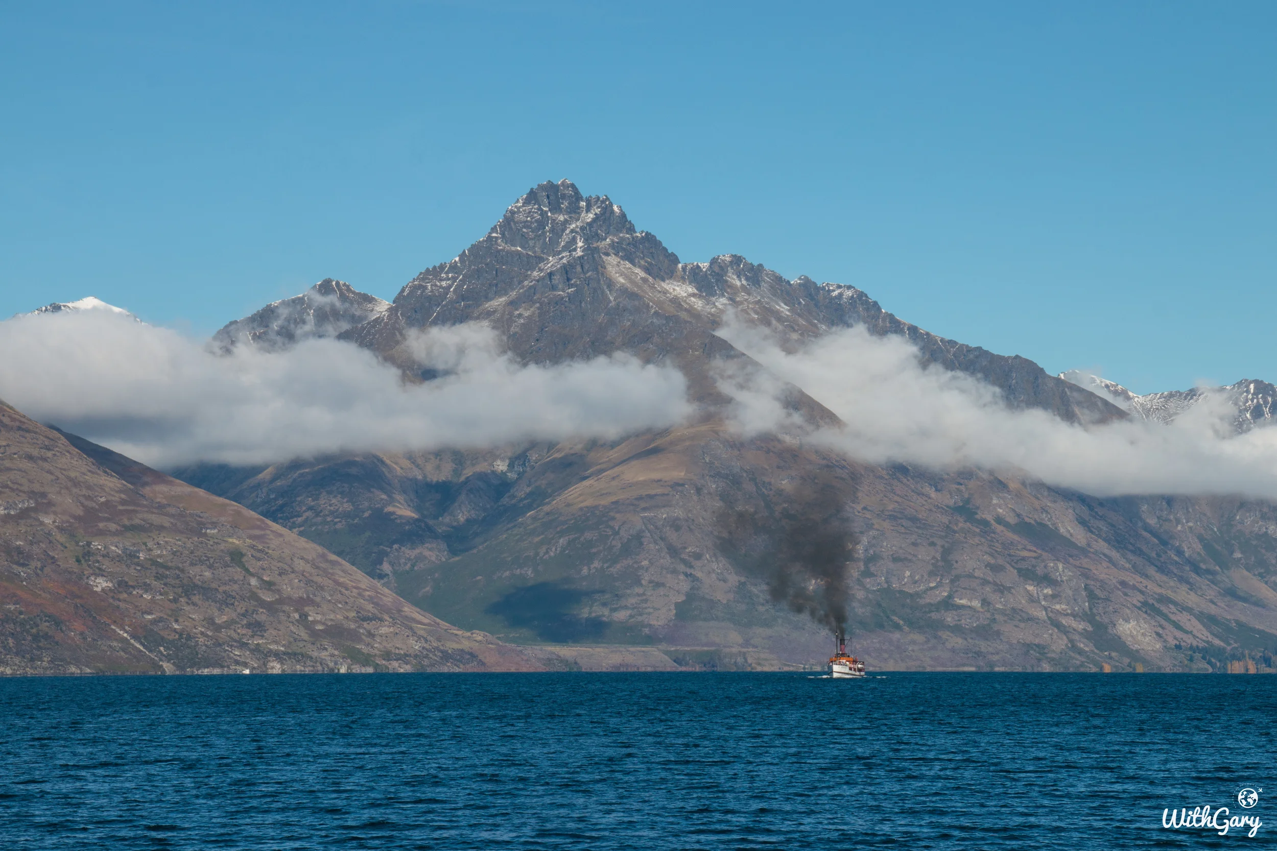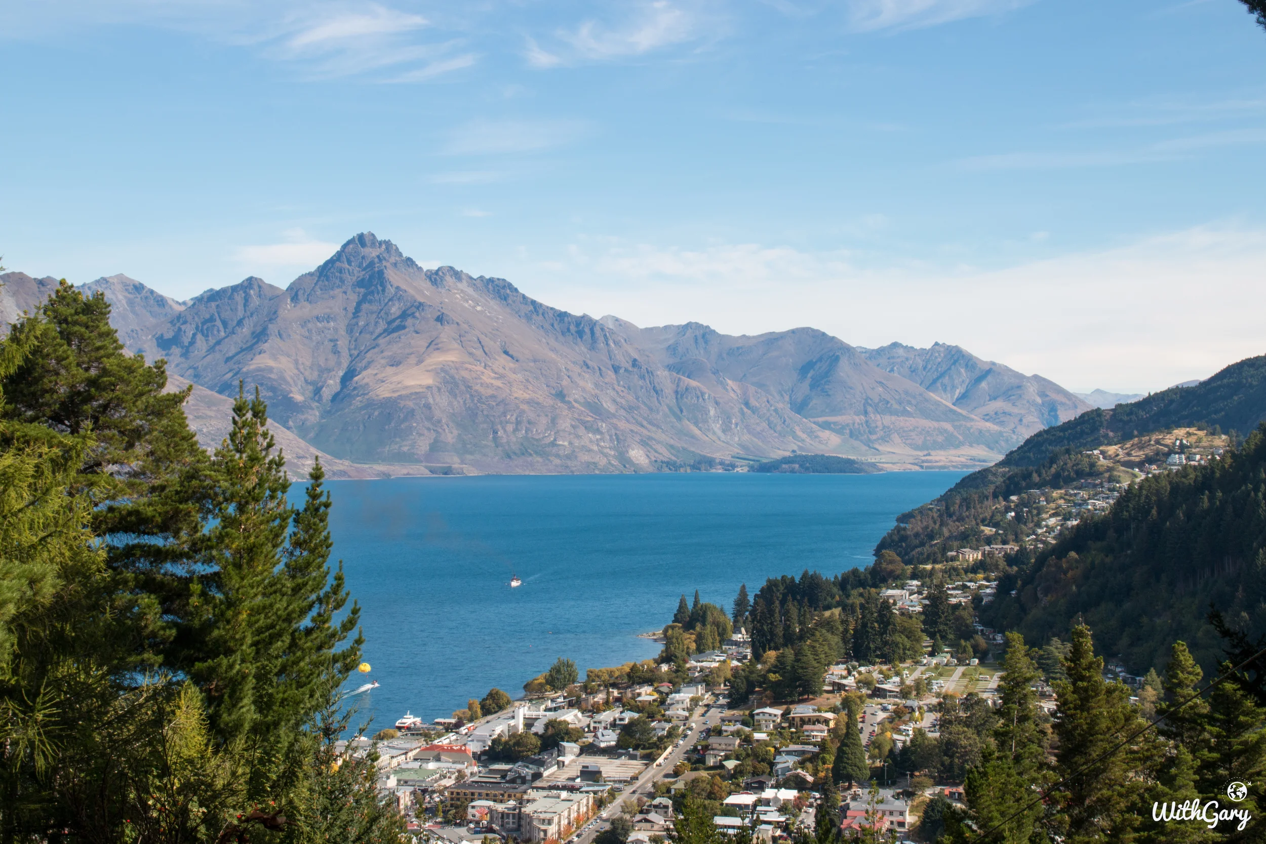 Queenstown qui pointe le bout de son depuis le lac Wakatipu