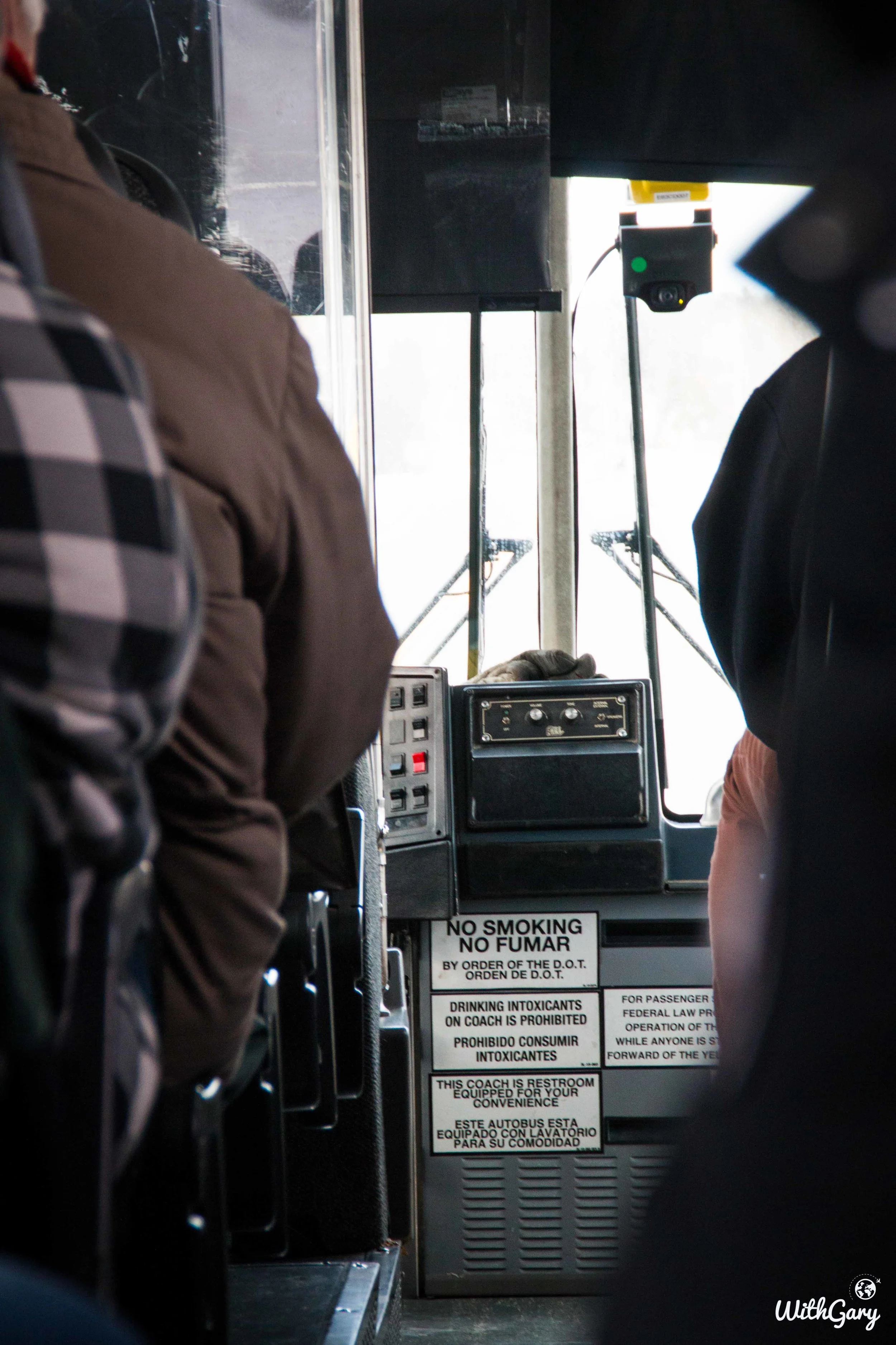 Il a commencé à neiger à Montréal la veille de mon départ et les routes du Québec et de l'Ontario sont jonchées de neige. Un régal pour admirer les forêts enneigées que l'on traverse. Les lacs peu importants sont gelés alors que les grands font de la résistance. Malheureusement la saleté des vitres rend les photos depuis l'intérieur du bus totalement impertinente. Je mémorise donc ces paysages tellement canadiens qui défilent sous mes yeux.