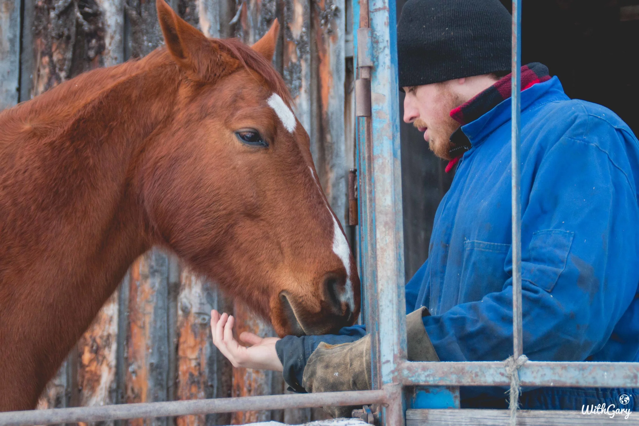 La journée de travail type commence à 8h00 avec les corvées journalières. Celles ci consistent à sortir les chevaux qui ont la chance de passer la nuit dans les box, qu'il faut évidemment nettoyer, et il faut également nourrir et abreuver les chevaux présents dans l'étable. Cela prend environ 1h30. Jusqu'à la pause déjeuner de 2 heures on trouve des occupations comme aller chercher des ballots de foin avec le tracteur ou bien nourrir les chevaux présents dans les prés environnants la ferme. On trouve toujours quelque chose à nettoyer ou à réparer.
