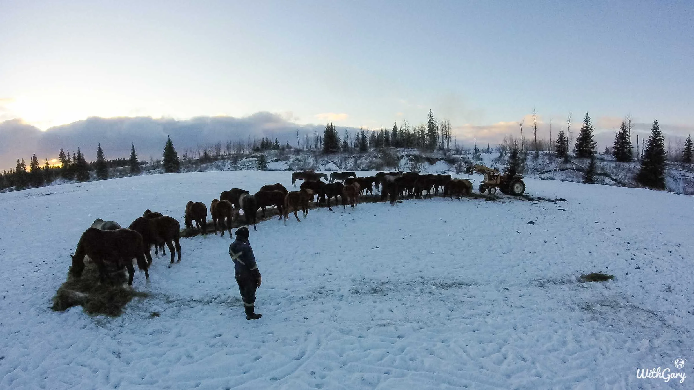 /J'arrive en bus à Whitecourt, la grosse ville à 40 minutes de Touchstone, la ferme où j'ai prévu de rester les deux prochaines semaines. Wendy me rejoint à bord de son monospace pour m'y conduire. La ferme est en fait un élevage de chevaux où plus de 180 espèces équines y résident. C'est une exploitation familial, où la mère, Mavis, âgée de 95 ans continue à y vivre avec ces deux enfants, Chris et Wendy. Ils ont l'habitude d'accueillir des bénévoles tout au long de l'année pour faire tourner l'exploitation. Ca permet notamment à Wendy de s'occuper à plein temps de sa mère nonagénaire, qui a une pêche incroyable encore.