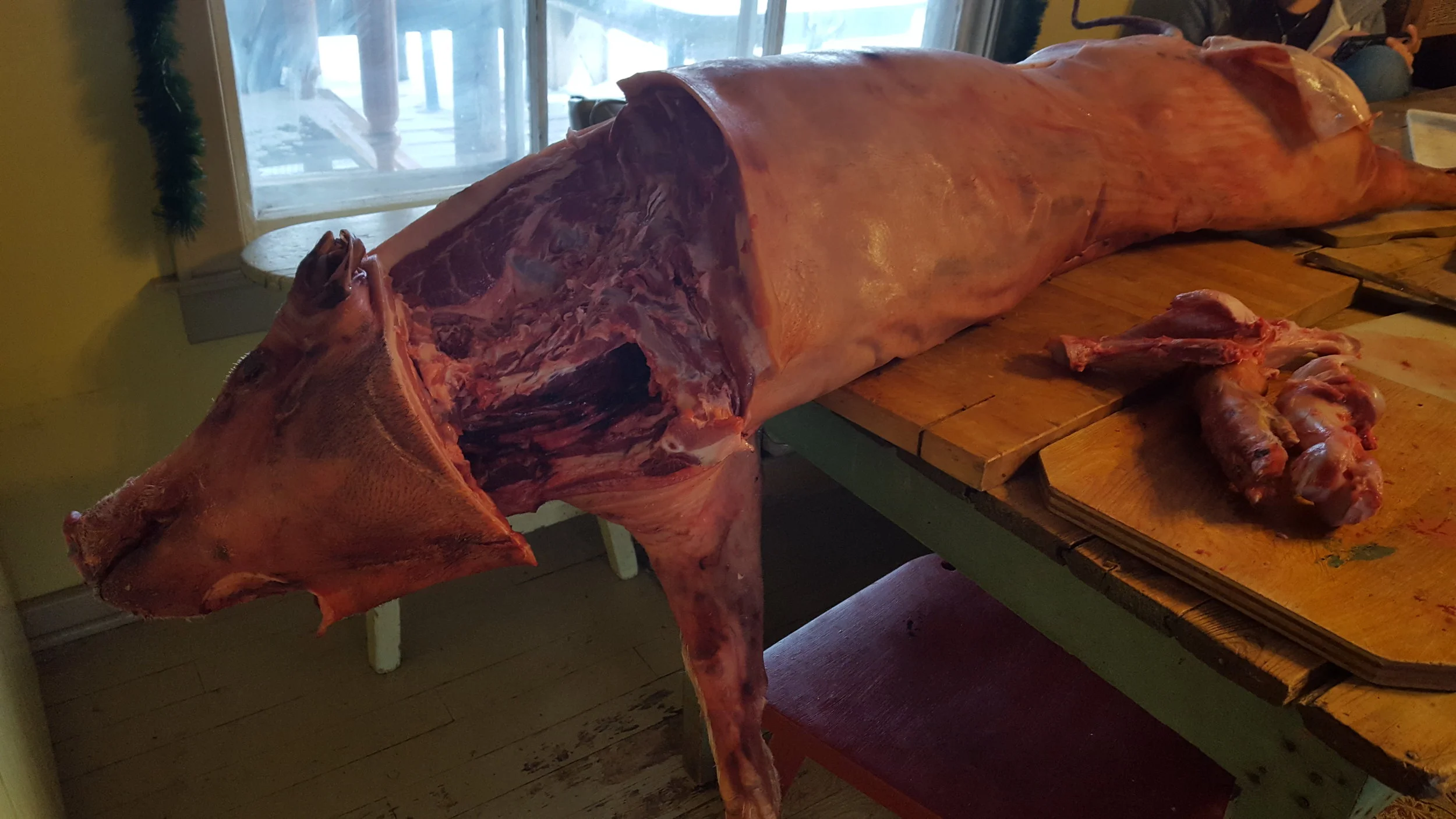 Les deux autres frères et soeurs de Chris et Wendy rejoignent la ferme pour fêter Noël comme il se doit. Un modeste diner pour le réveillon, mais ensuite c'est parti pour 3 jours de festin non-stop. Un des neveux habite ici aussi et est boucher de surcroit. Alors on a le droit à la préparation en direct de tous les mets à base de porc de près ou de loin (tourtes, rôti, hâché,...). Ca change de la viande de cheval qu'on a l'habitude d'avoir à chaque repas ^^