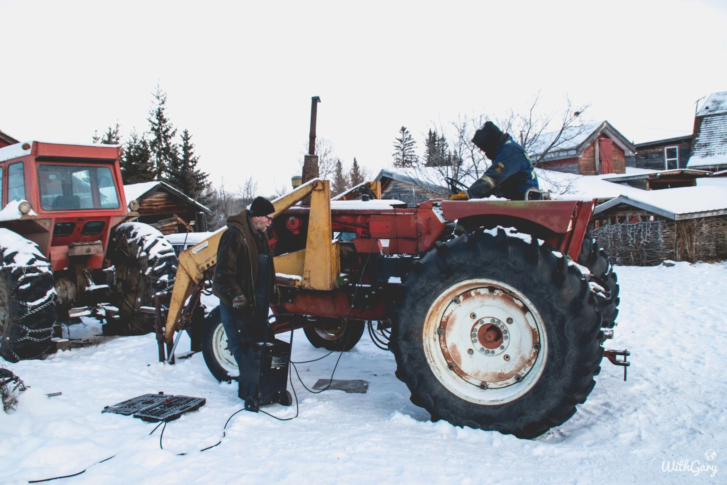 Nous approchons la mi-décembre et l'hiver est bien installé avec le froid qui l'accompagne. Une semaine avant mon arrivée ils ont reçu une grosse vague de froid avec des températures descendant jusqu'à -30°. Ce froid est survenu relativement tardivement et précipitament. Il faut un temps de transition pour accompagner ces températures glaciales et comme chaque année la ferme n'est pas complètement prête à accueillir ce froid en quelques jours. Du coup à mon arrivée on passe pas mal de temps à dégeler les tuyaux pour les abreuvoir ainsi que la pompe qui puise dans les nappes phréatiques pour alimenter la ferme. Sans oublier le tracteur, qui fait des siennes par ces températures polaires.