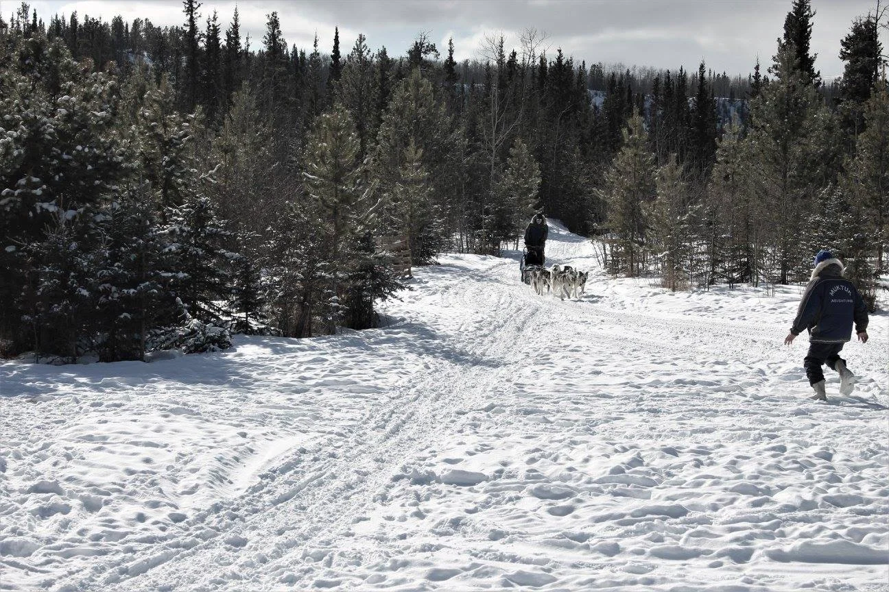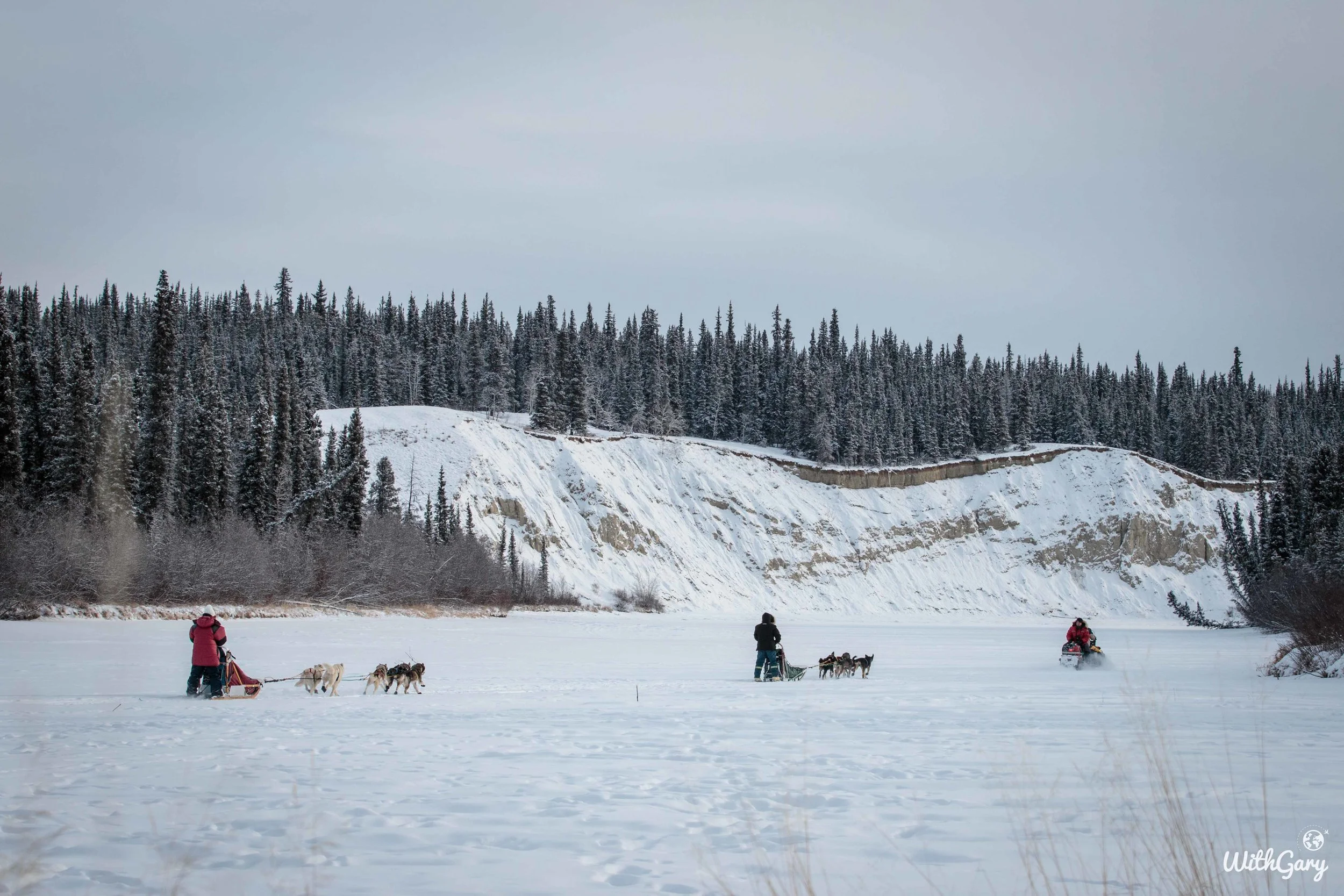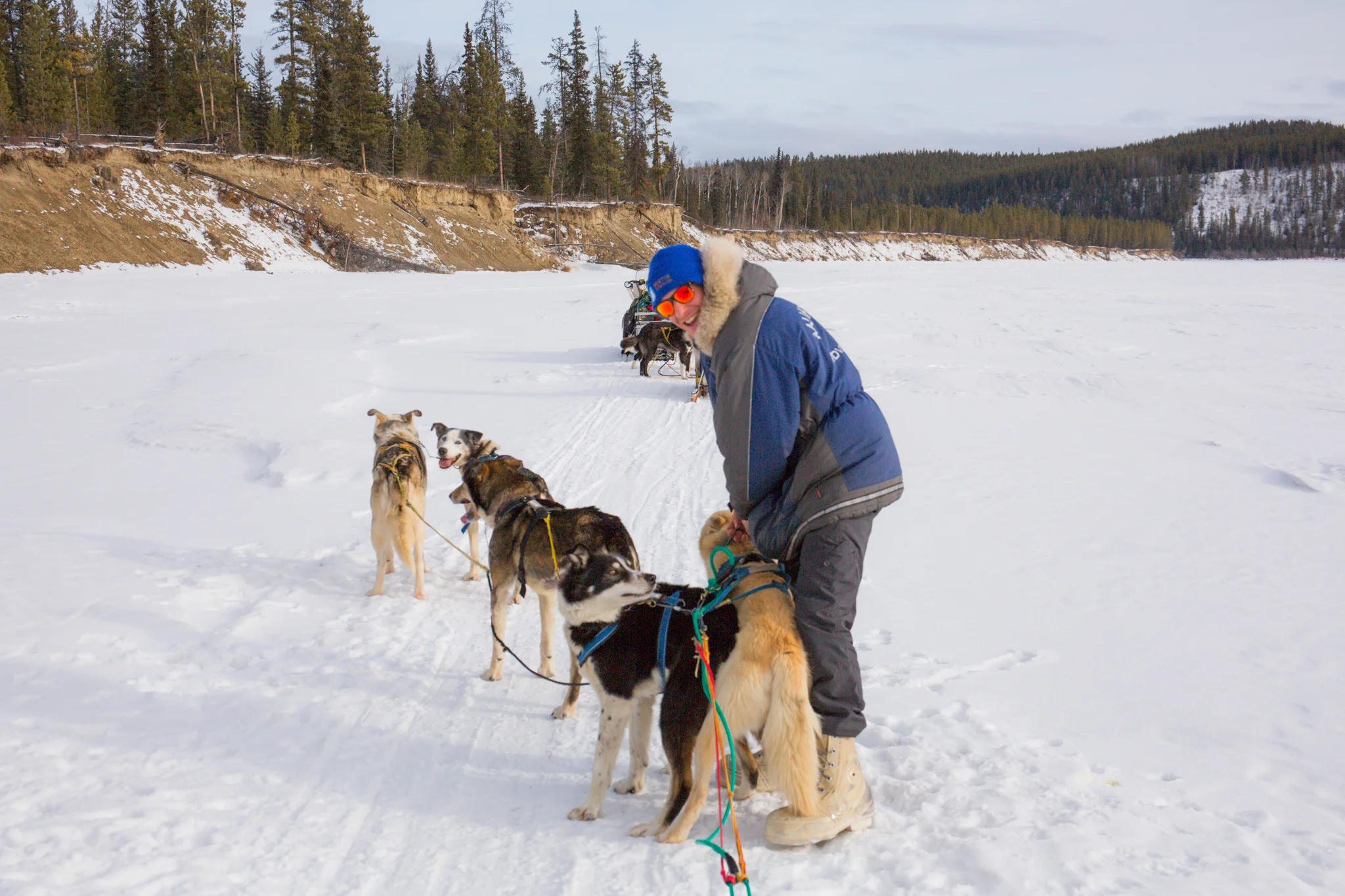 Une fois sur la rivière je dois m'assurer que chaque "musher" arrive à stopper son traîneau et respecte une bonne distance avec l'équipe qui le précède. C'est assez simple mais il faut également avancer avec la moto neige et garder un oeil derrière sur l'ensemble du groupe qui peut compter jusqu'à 5 traîneaux. On fait régulièrement des pauses pour reposer les chiens mais aussi pour immortaliser ces instants magiques pour ces touristes du monde entier. Je dois également veiller à ce que les chiens ne s’emmêlent pas entre eux, ce qui arrive très régulièrement lorsque les leaders ne sont pas dans leur bon jour :)