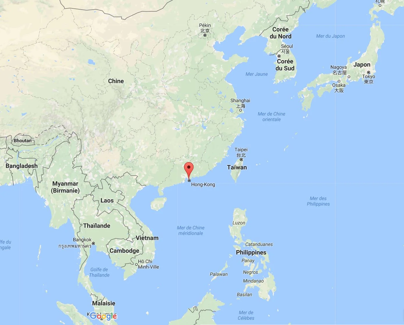 Entre la Nouvelle-Zélande et la France se trouve Hong-Kong.