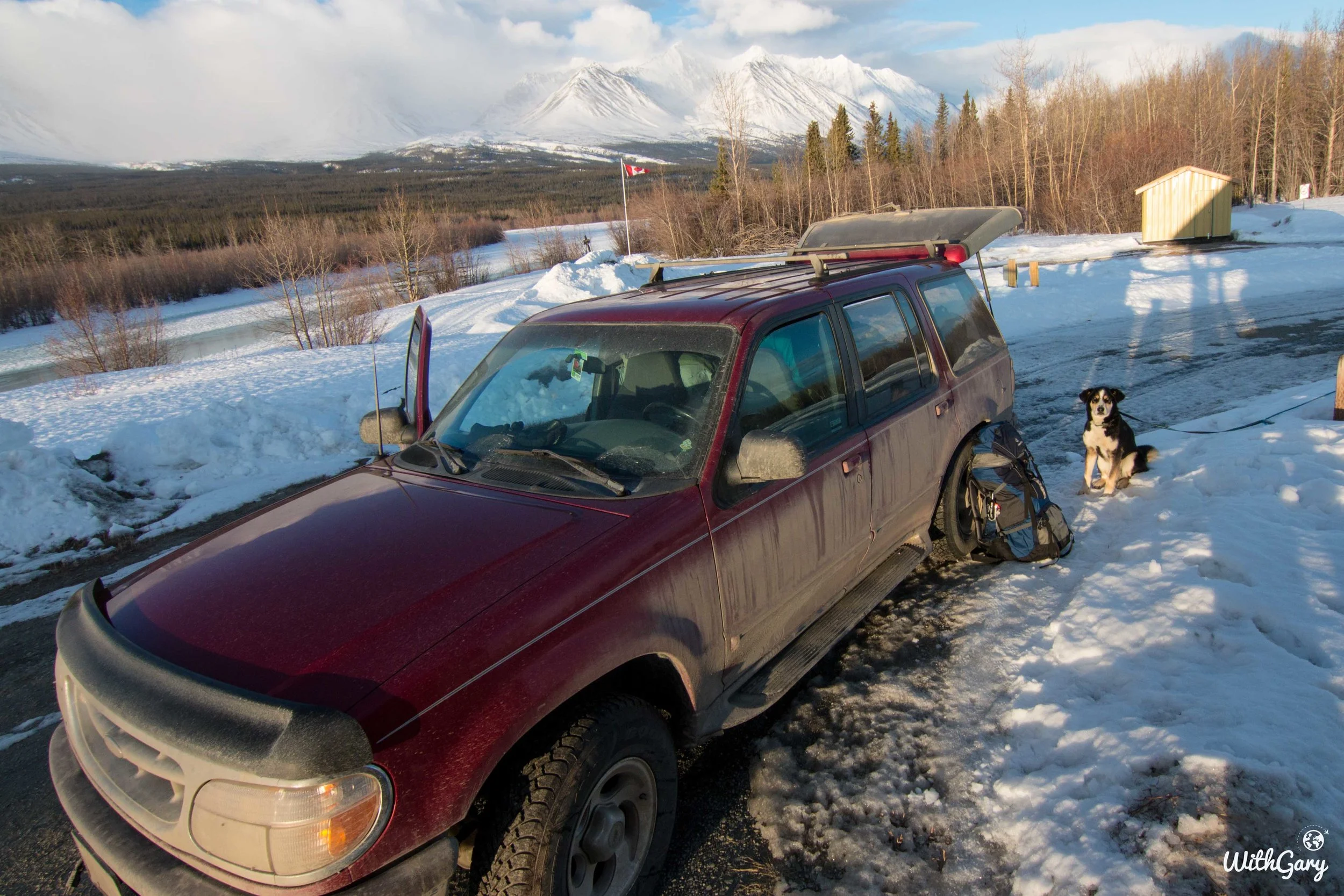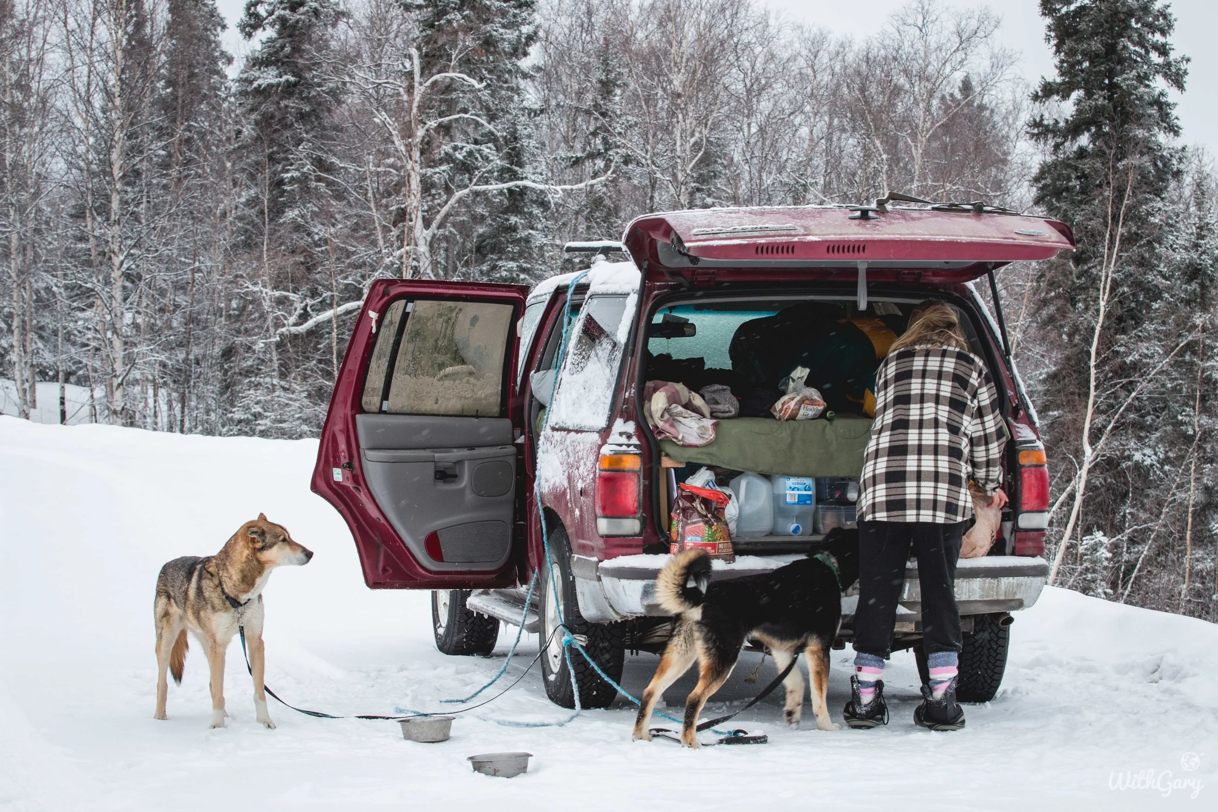 Avec Christin, une volontaire allemande rencontrée ici à Muktuk, on décide d'aller faire un tour en Alaska, avant de quitter le nord du Canada. Elle a un véhicule tout terrain équipé d'un lit à l'arrière, parfait pour aller à la conquête de ces terres sauvages américaines. L’objectif est d’aller jusqu’à Fairbanks et rencontrer Lance McKay, une légende dans le monde du mushing. Bien sur, c’est surtout l’occasion de découvrir cette partie du territoire et faire des randos tout au long de la route.