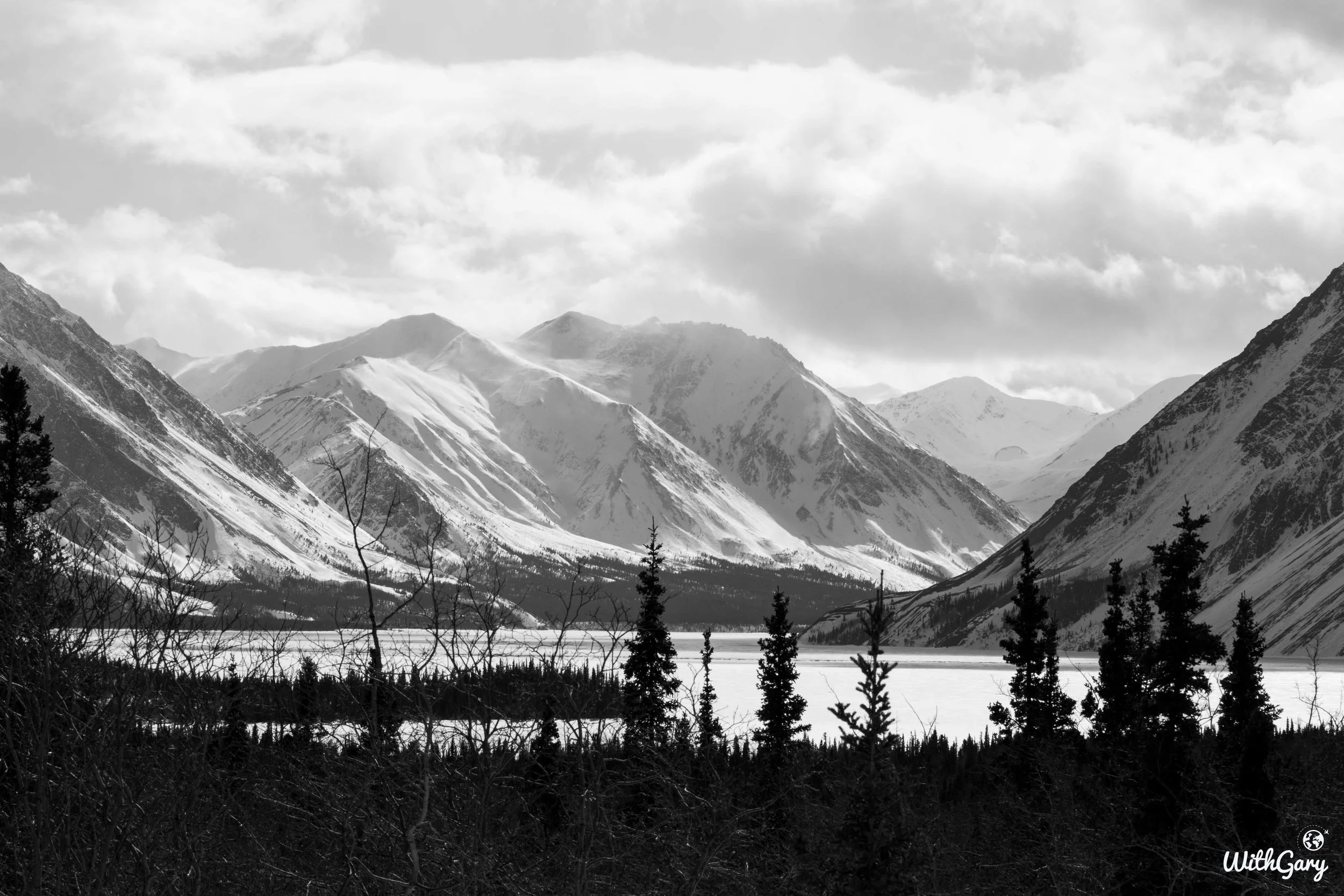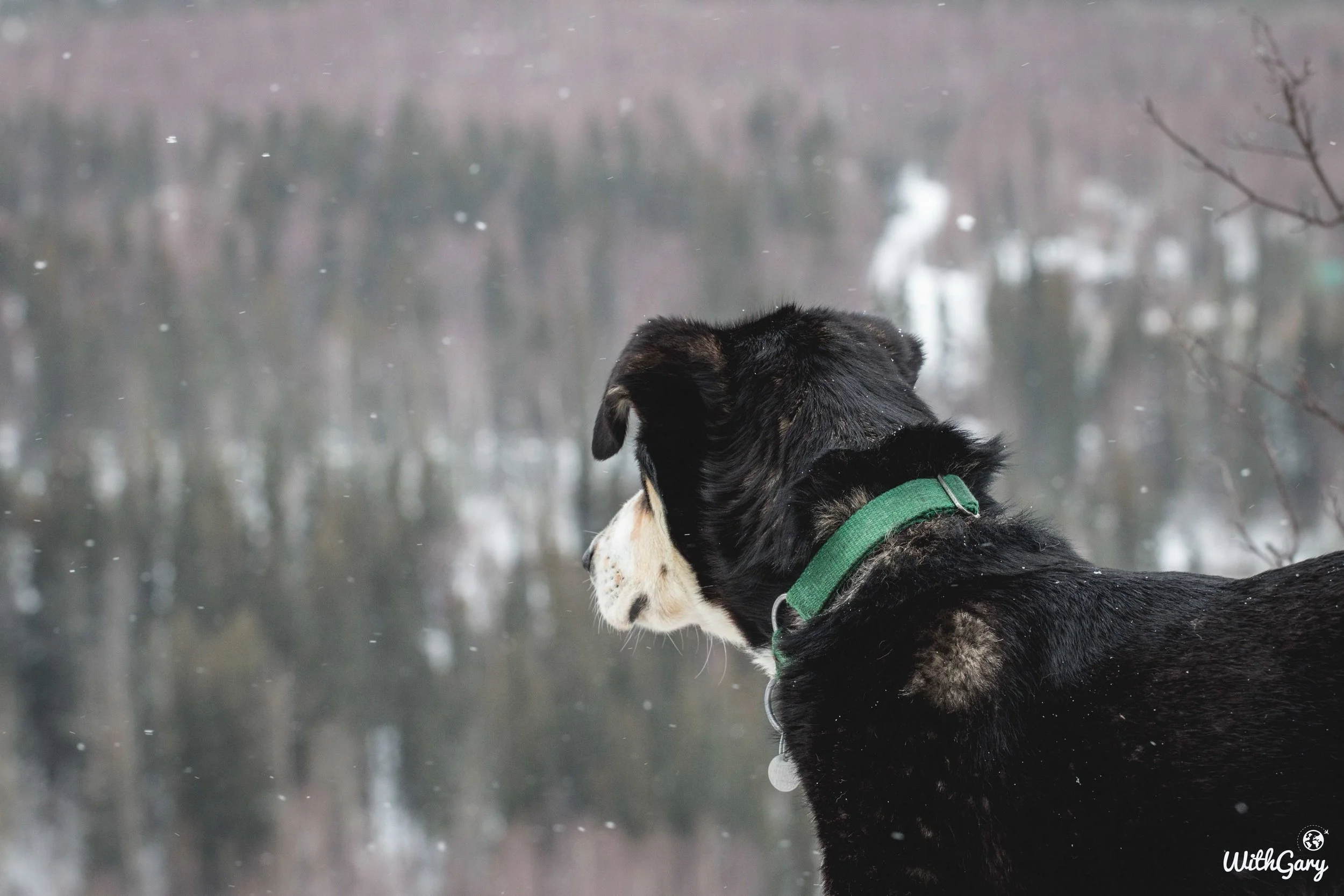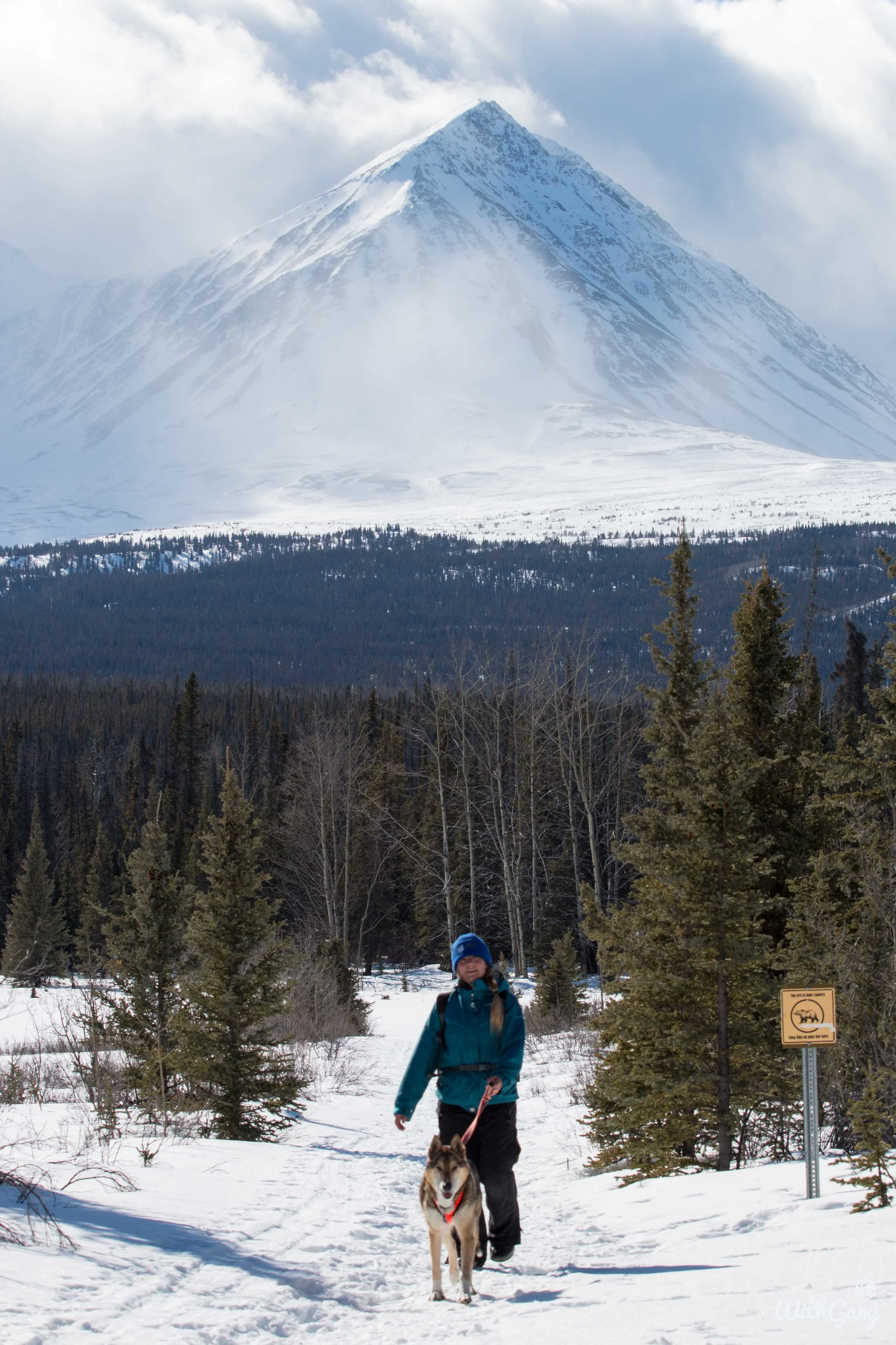 Notre premier arrêt se fait seulement à 2h de la capitale du Yukon, dans la ville de Haines Junction qui borde le Kluane National Park. On est parti assez tard et c’est déjà la fin de la journée. On fait alors une petite balade d’une heure en laisse pour dégourdir les jambes de chacun.