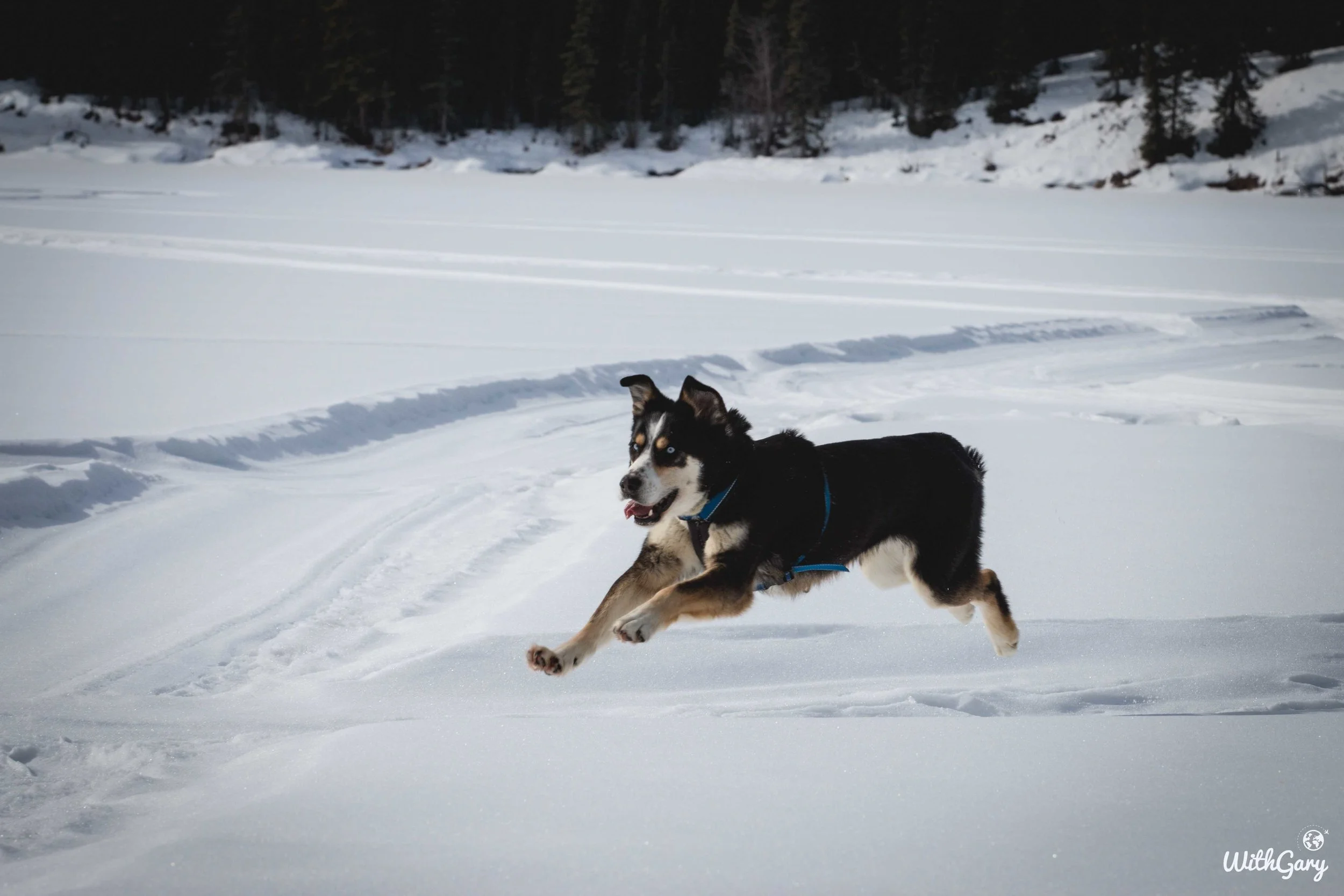 Il y a de nombreux endroits sur la route pour s’arrêter et faire courir nos deux fidèles compagnons. C'est l'occasion pour nous d'essayer de décrocher les laisses. Et ça marche ! Ils partent à l’aventure pour chasser quelques écureuils mais reviennent toujours à nous quand on les appelle. Bon, on a toujours avec nous quelques sucreries pour les persuader de revenir.