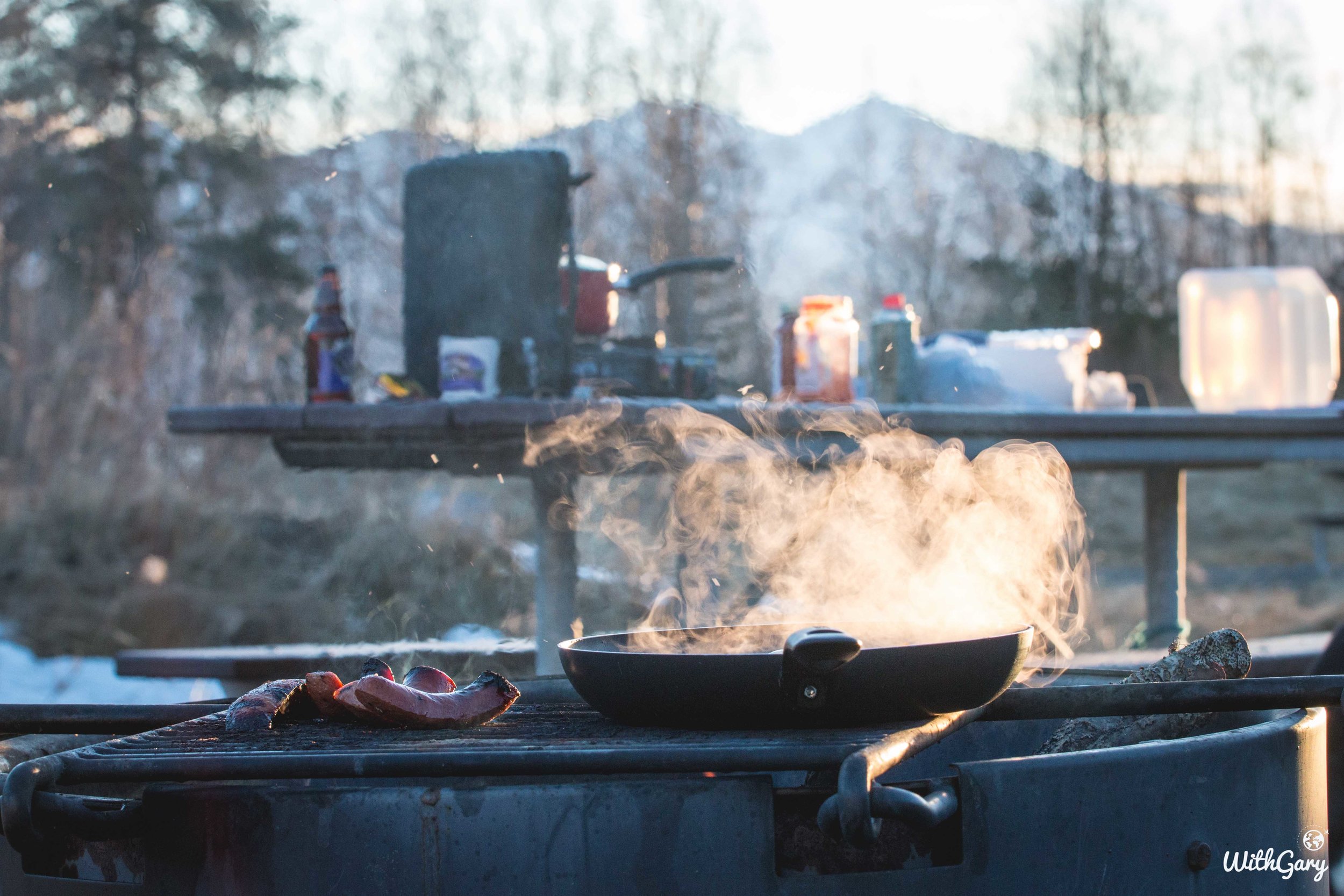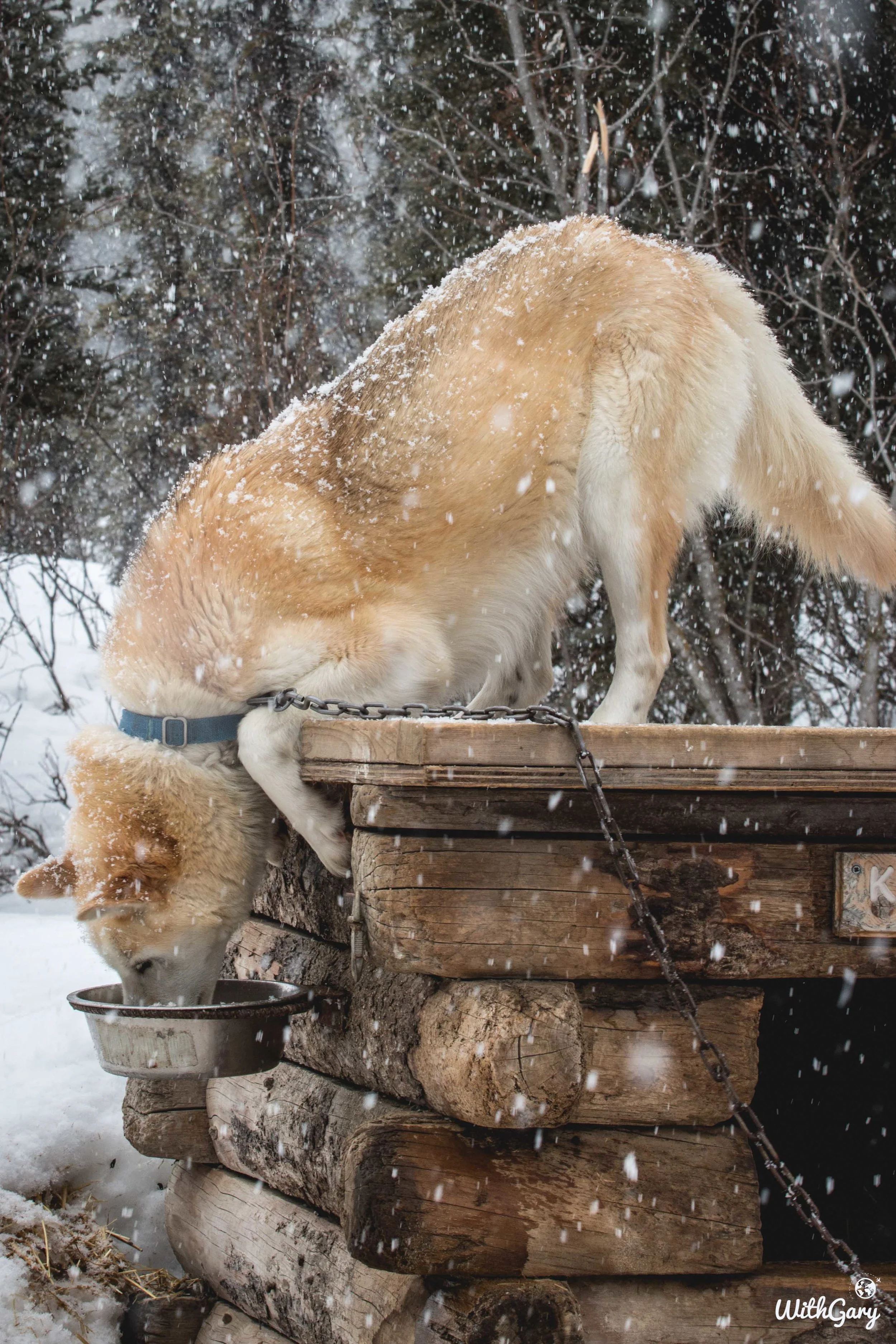 Fairbanks est également le moment pour nous de rencontrer Lance McKay, une véritable légende dans le domaine des courses de chien de traineaux. On arrive à son chenil, une centaine de chiens nous accueille, les hauts parleurs extérieurs crachent du rock et Lance est en train de ramasser les merdes dans la cour. Le décor est planté. On se présente et il nous propose de faire le tour de sa propriété. On lâche nos deux chiens dans cette arène mais Copper s’avère anxieux avec tous ces inconnus et Jonas trop apte à l’exploration alors on les remet dans la voiture. Lance nous propose ensuite de venir dans sa maison.